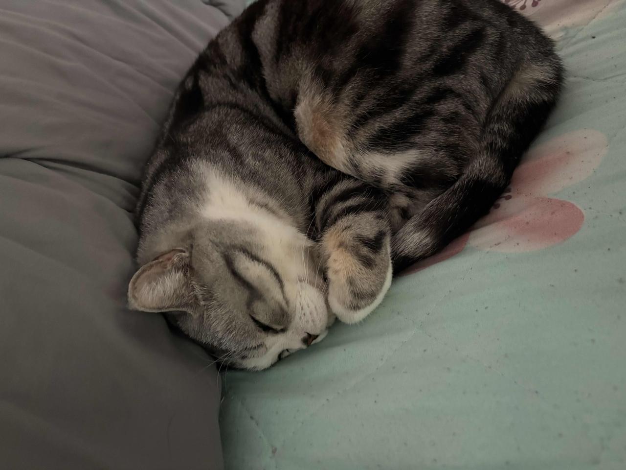 猫咪伪装成香菇睡觉