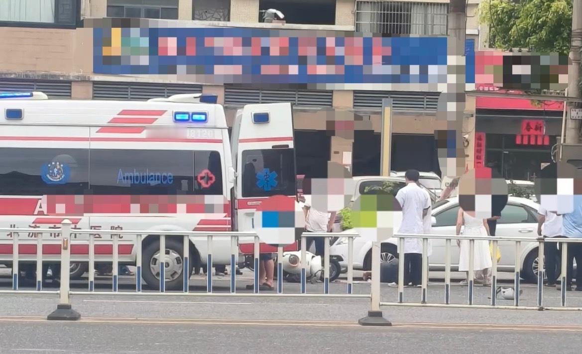 【玉林某冠超市旁电车被汽车撞飞人受伤】