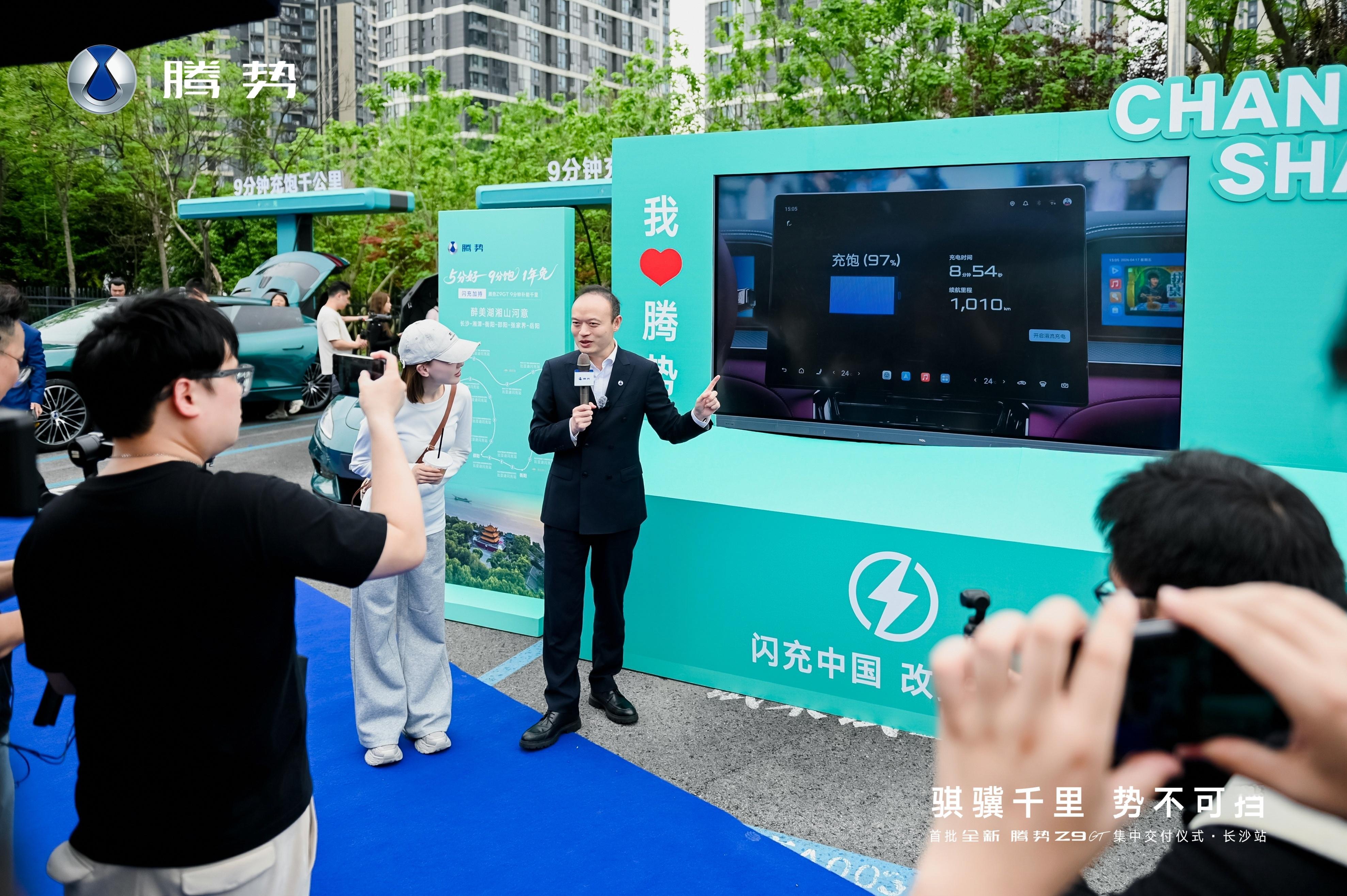 这次久违地来到长沙,我非常高兴。不仅见证了比亚迪第1600万辆新能源汽车下线的里程碑时刻,这也是我们全球首台下线的科技豪华旗舰MPV第二代腾势D9。而且,我还在长沙中和愿景腾势中心,给6位尊贵的全新腾势Z9GT车主亲手交付爱车!在交付现场见证搭载着第二代刀片电池及闪充技术的全新腾势Z9GT9分钟充饱千公里!在现场我跟用户朋友们交流,大家亲眼看到闪充实测,都非常震撼,为第二代刀片电池以及闪充技术点赞,为腾势汽车点赞!超长续航加闪充,真正解决了大家的续航焦虑和充电焦虑,只需一杯咖啡的时间,就可以充饱出发,让我们的用户朋友真正实现出行自由!感谢用户朋友们的支持和信任,大家关心的痛点就是我们努力的方向,以用户为先,与用户共创。我也非常感谢大家的理解,目前全国各地都已经在陆续交付全新腾势Z9GT,产能已达到每天200台左右还在不断地提高,一定尽快让大家提到爱车!谢谢!全新腾势Z9GT纯电续航1036公里全新腾势Z9GT首搭第二代刀片电池及闪充技术全新腾势Z9GT长沙集中交付