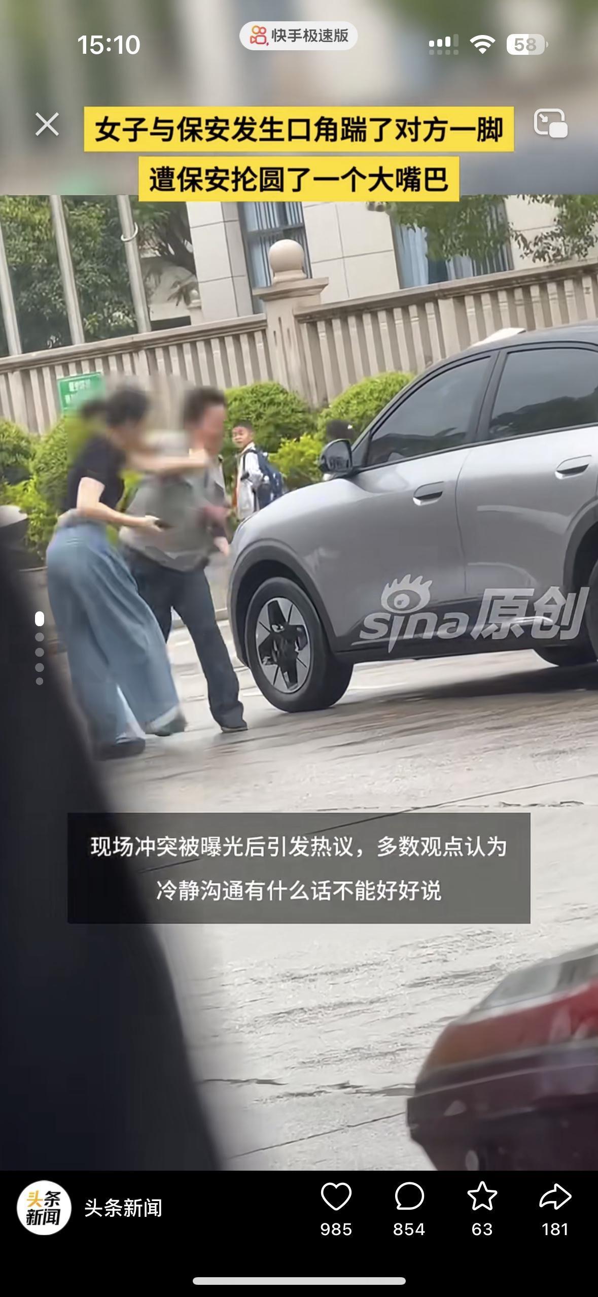 都说女士优先,可也没说是打人优先啊 女子被保安大爷上了一节课!黑衣女司机和小区门