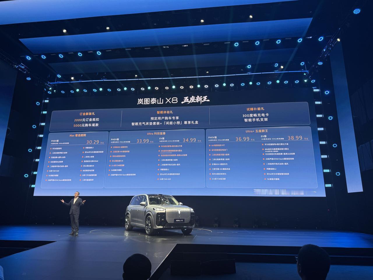 岚图泰山X8预售价来了,30.29万起步。不过入门只有插电混动版,中高配增加纯电