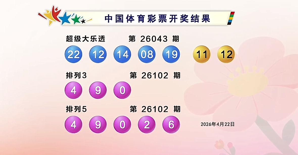 超级大乐透第26043期开奖号码揭晓:前区 08、12、14、19、22,后区