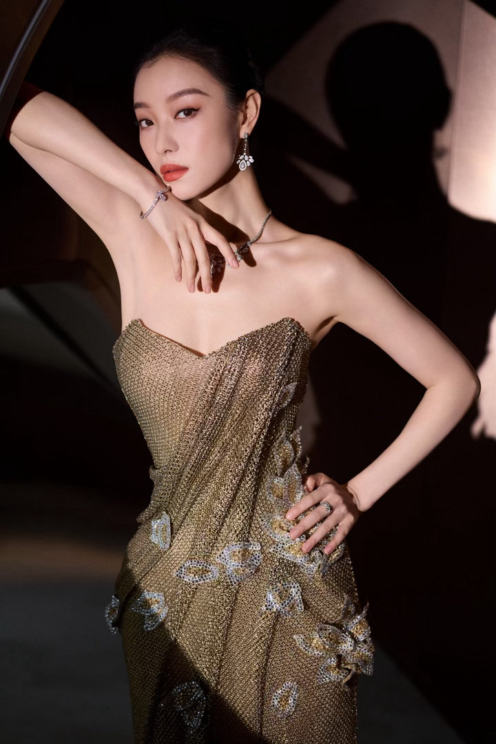 倪妮凯迪拉克品牌代言人 倪妮的鎏金长裙,像流动的光。她站在那里,品牌的高级感就有了具象。不是裙子衬她,是她让裙子成了艺术品。