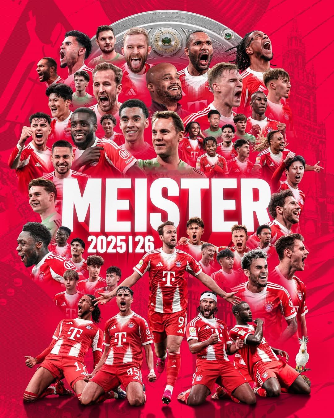 拜仁男足德甲提前四轮夺冠,德国杯进决赛,欧冠已进半决赛✔️