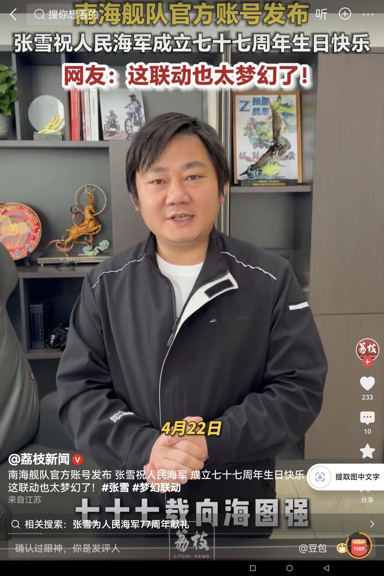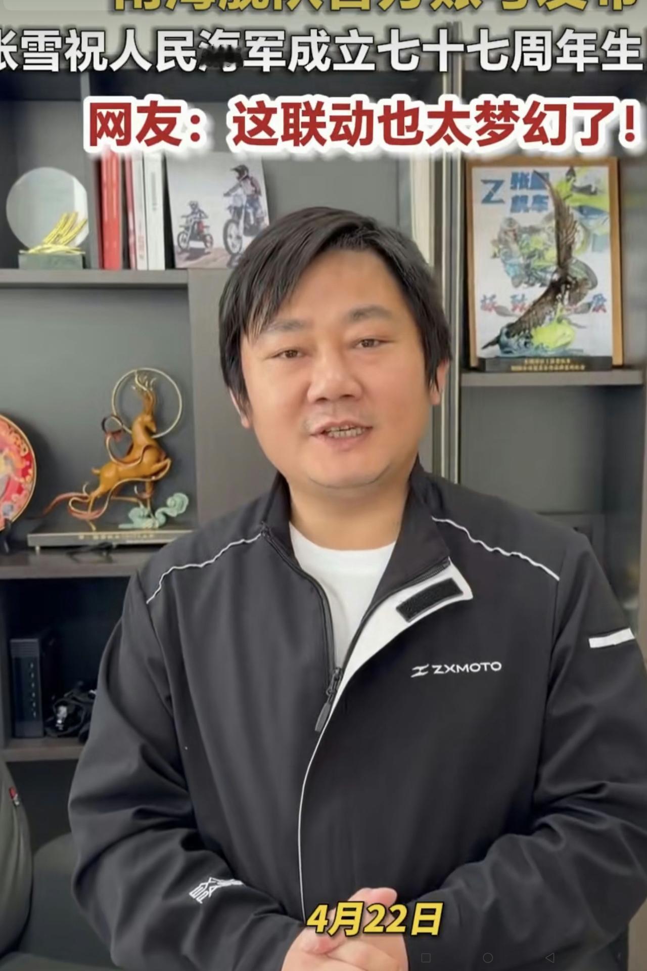 昨天是人民海军77周年生日,从小梦想当兵的张雪发了一条短视频,祝贺海军生日快乐!