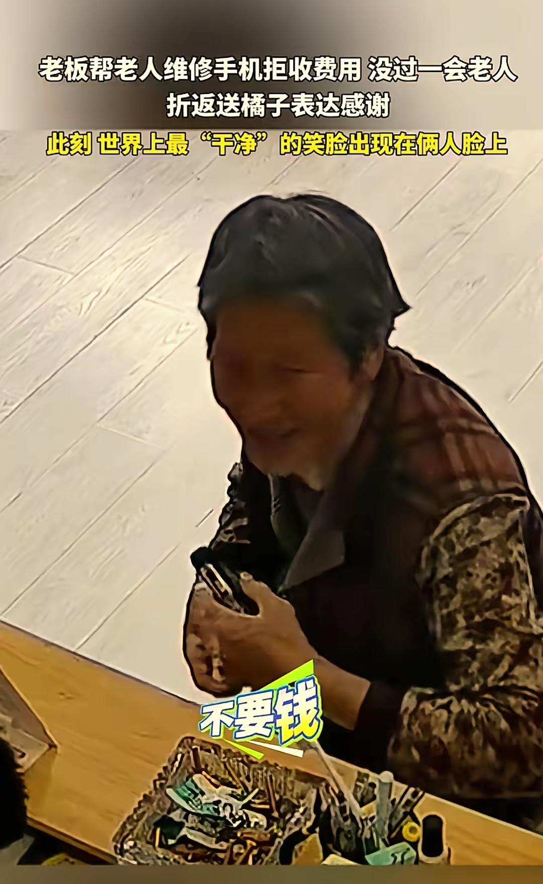 乔先生连忙摆摆手,坚决不收,他说自己主营业务不是修手机,这点小忙不算什么,而且老奶奶这么大年纪,挣钱不容易,年轻人赚十块八块相对容易些,没必要收钱。