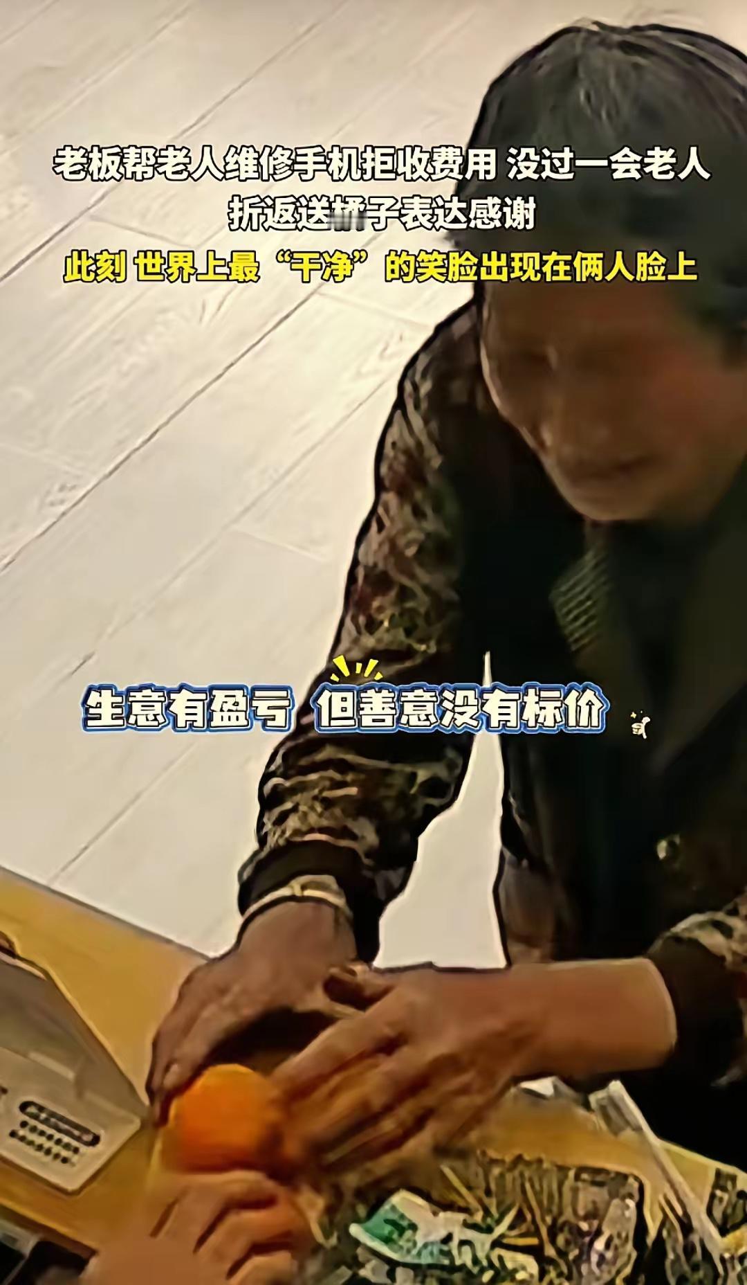知恩图报!河南一位七旬老奶奶到手机店修手机,说手机老是开关机不灵、按键也不好使。店主拿过来简单调试几下就修好了,奶奶连忙掏出零钱要付钱,店主却摆摆手坚决不收。没想到奶奶出门后突然折返,一个举动让店主开心了一整天!