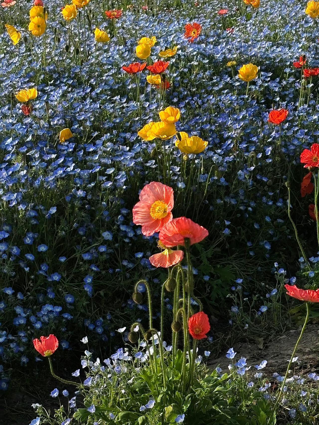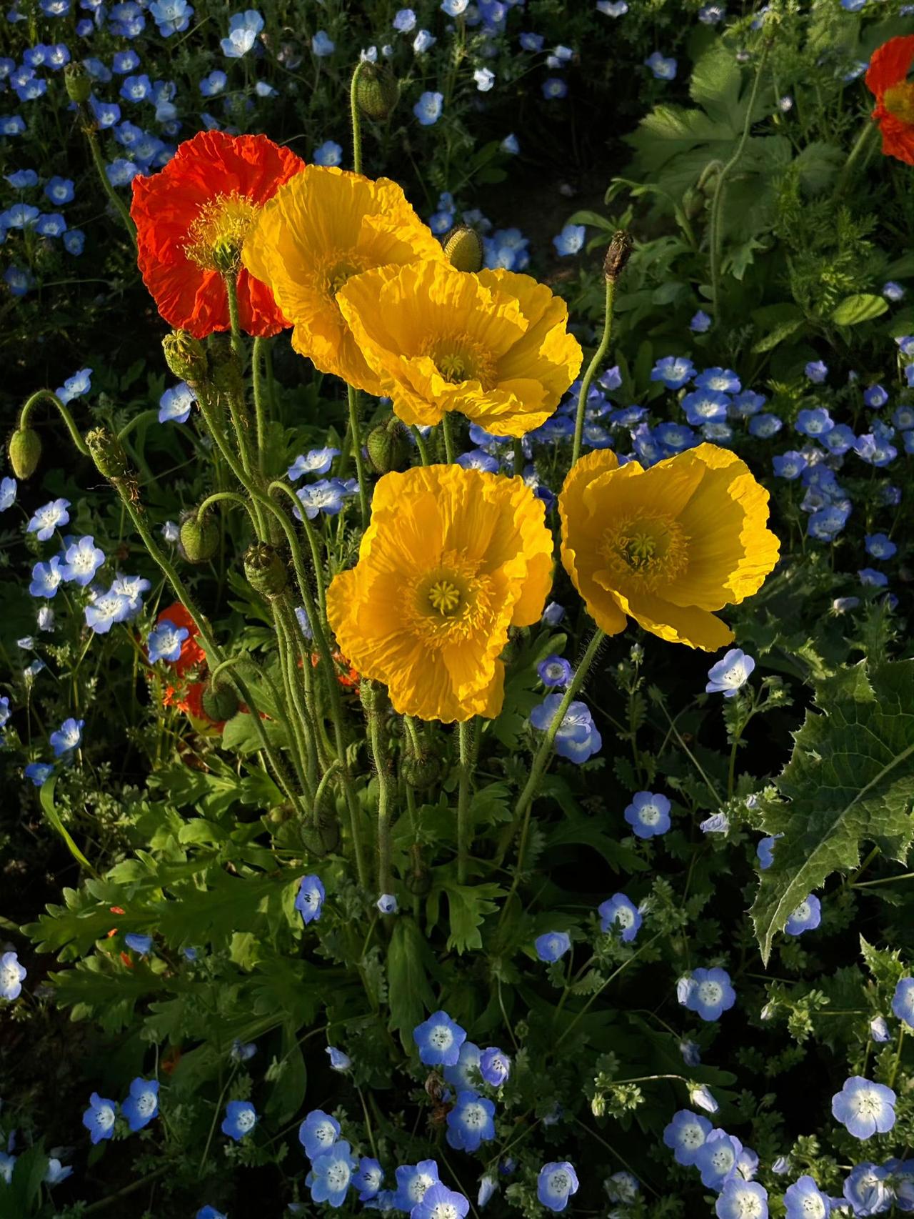 🌼蓝星坠入绿野,金盏托起阳光✨。每朵都是春天的私语,藏着风的形状💨。