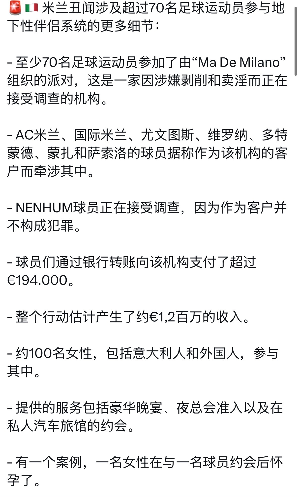 意甲“陪侍门”逐渐曝光出来了更多球员的名字。好想吐 。。。。。