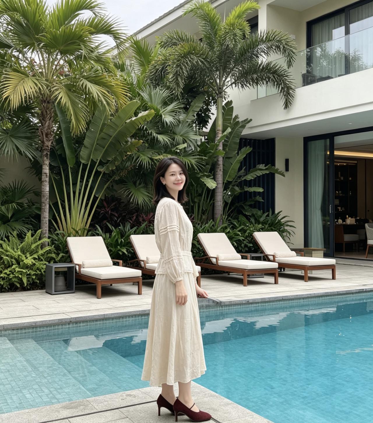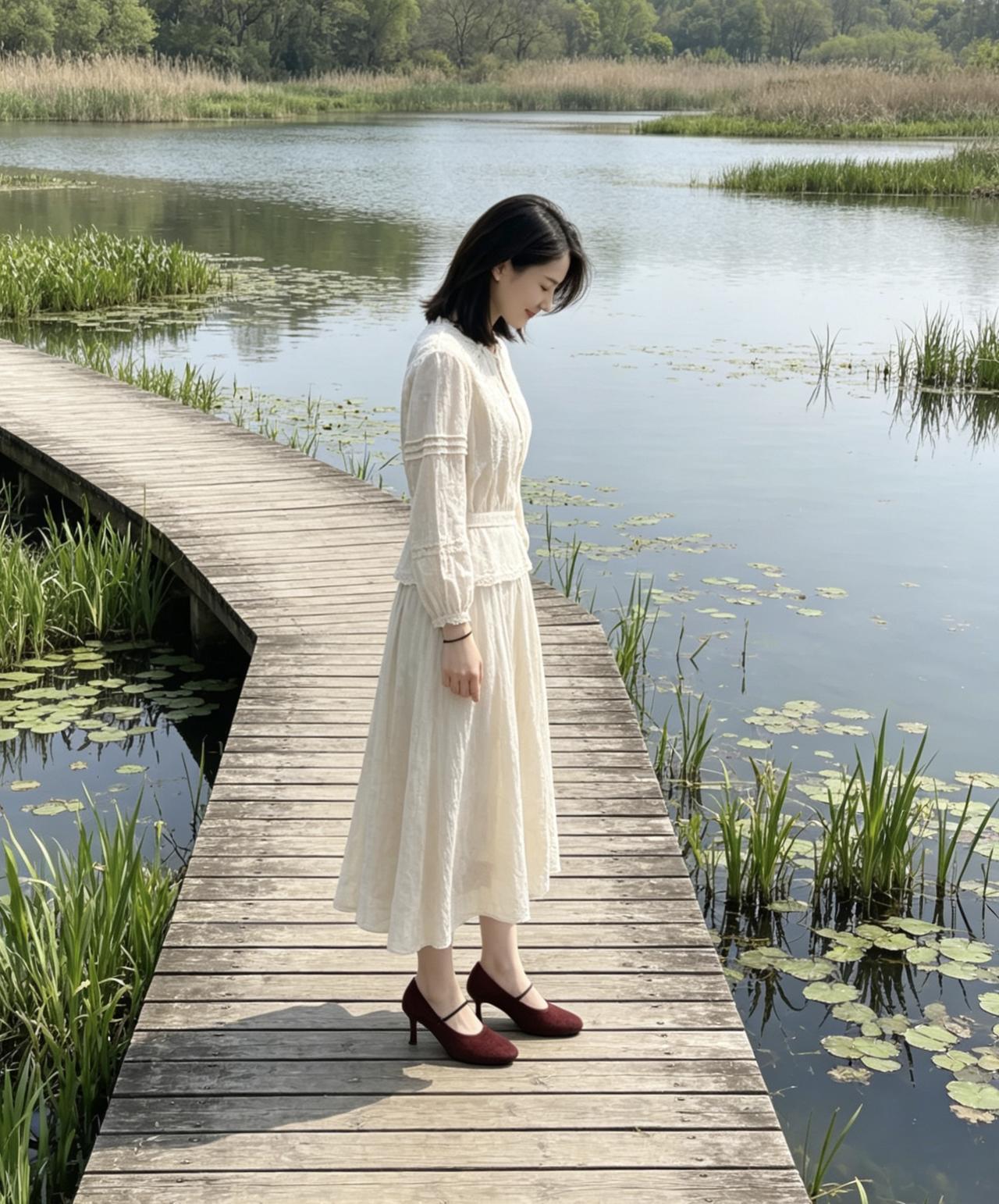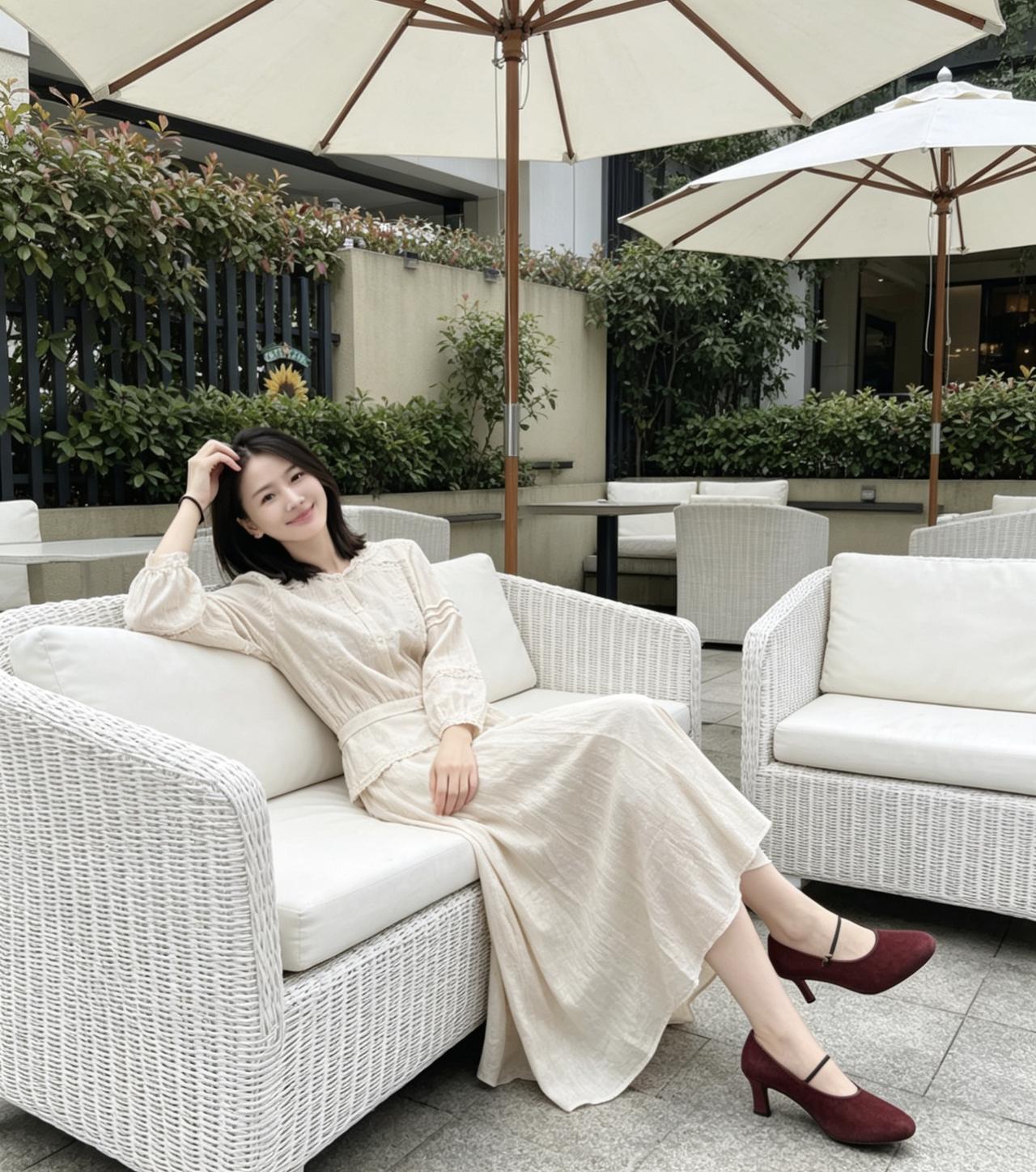 红鞋点缀素雅穿搭,冷暖碰撞,氛围感瞬间拿捏。微风轻拂裙摆,眉眼温润,举止温婉。原来真正的优雅从无需刻意,这般岁月静好的模样,才最让人心生欢喜。