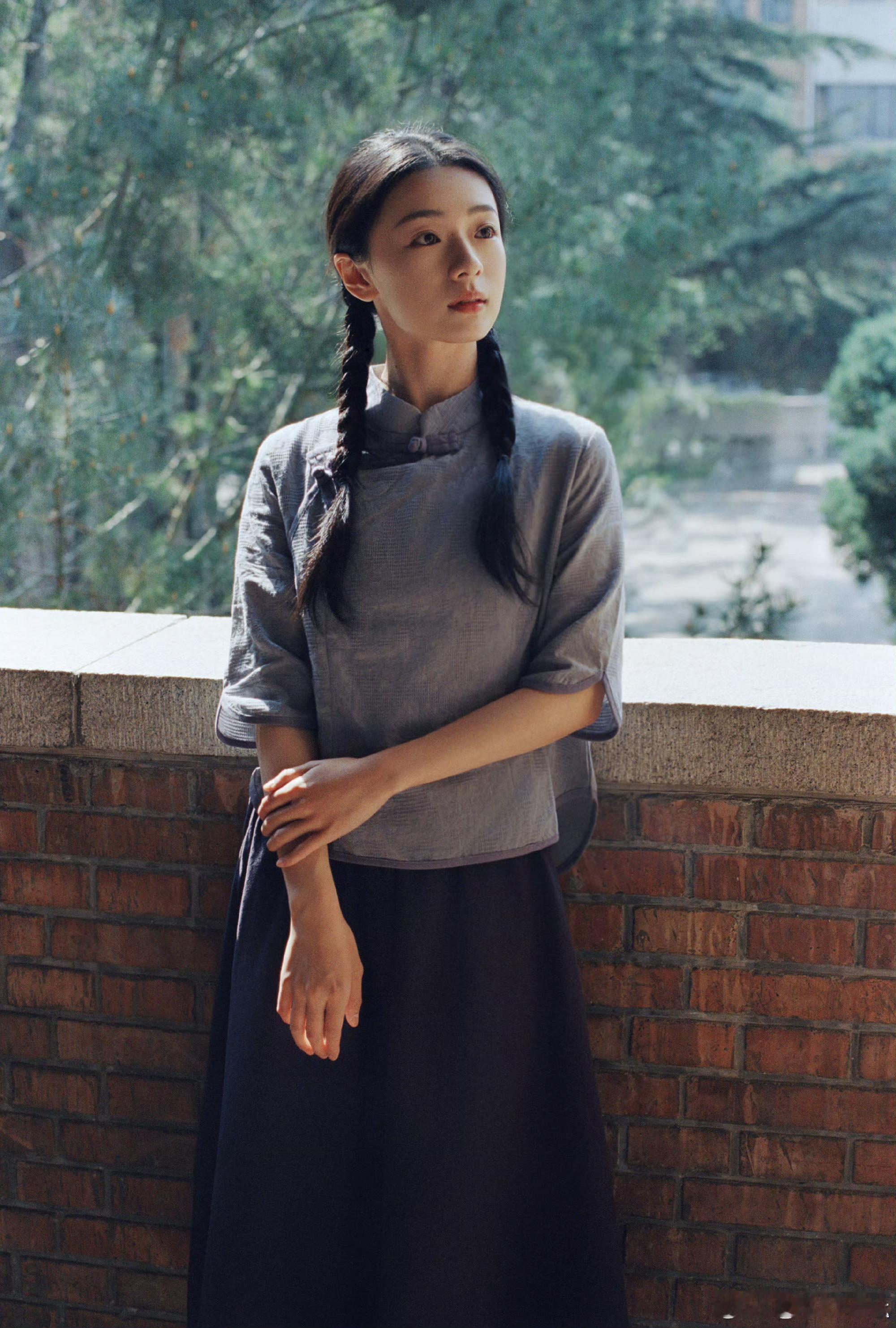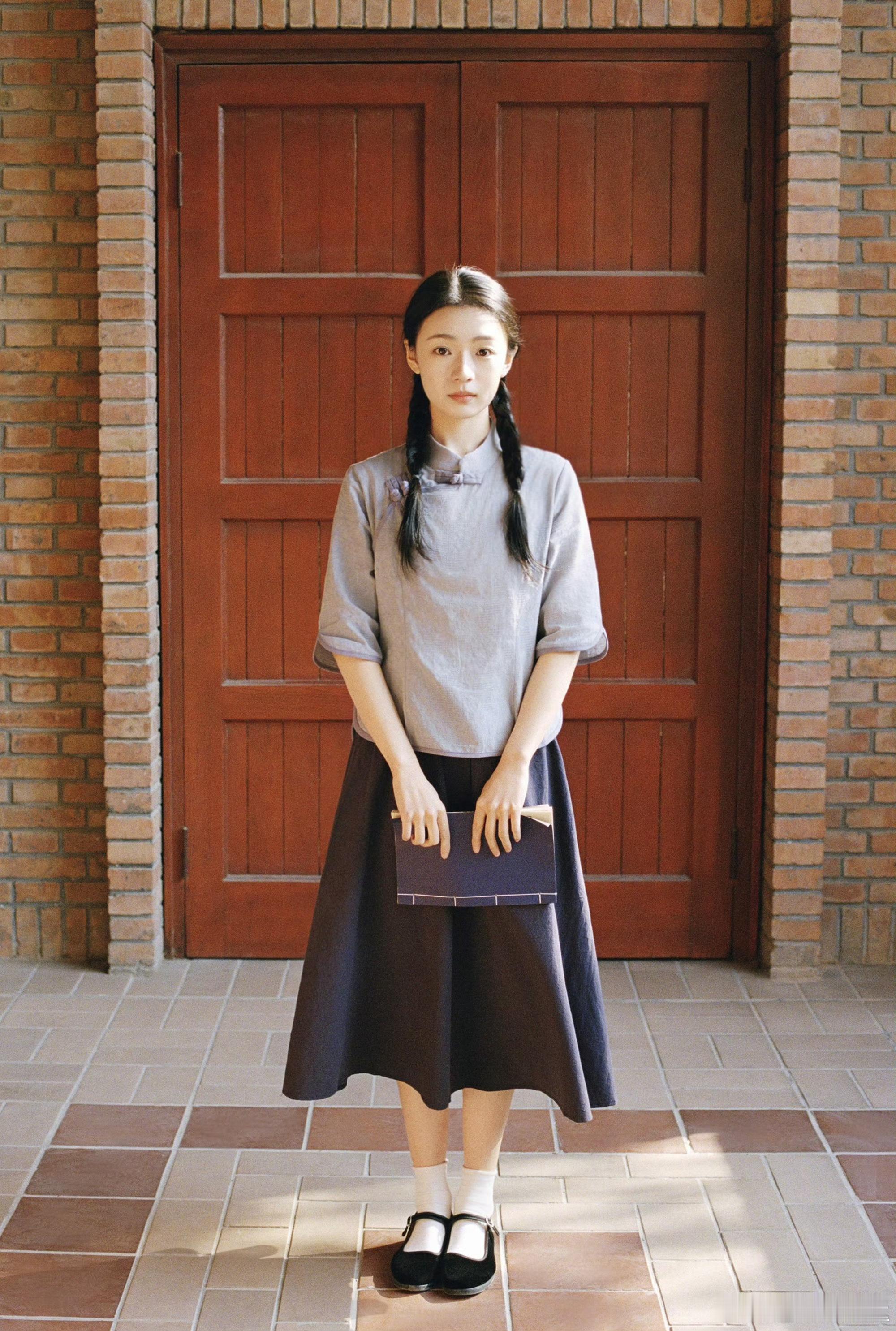 王和申请当一天民国女学生王和民国女学生妆造 王和这组复古写真太戳了!浅紫上衣配深蓝长裙,双麻花辫一扎,手里还拿着本旧书,站在红砖墙前,活脱脱民国女学生模样,温婉又文艺,爱了爱了。