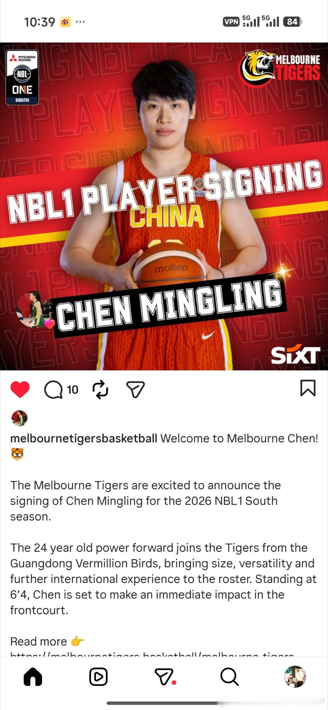 陈明伶签约墨尔本老虎队澳大利亚NBL1广东女篮
