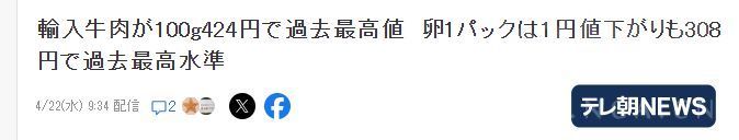 啊?😦 小八嘎的进口牛肉价格高达424日元/100克,约合90人民币/斤 你