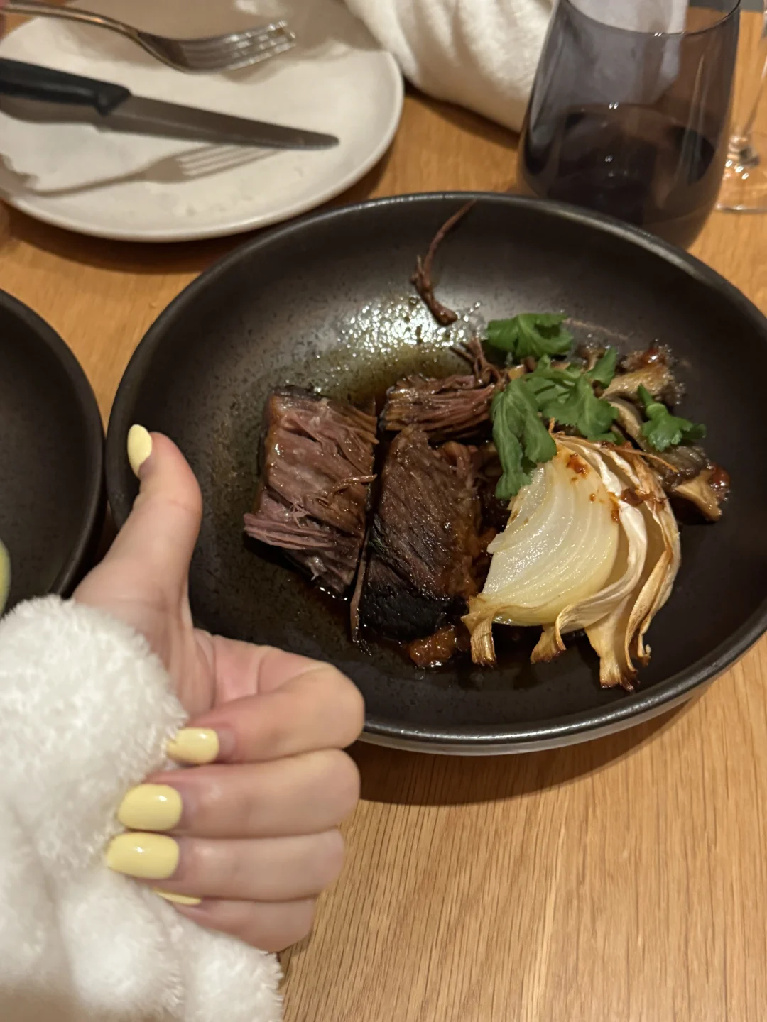 ♨️距离东区开车一个小时出头,这个时间堪称算我的staycation首选了…然后餐厅品质是很不错,颇有fine dining的服务和氛围,果然是获奖主厨。我们主餐点了short ribs和扇贝,好吃😋量刚刚好够饱又不会有小肚子🤪