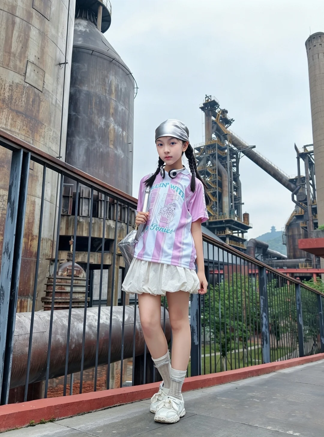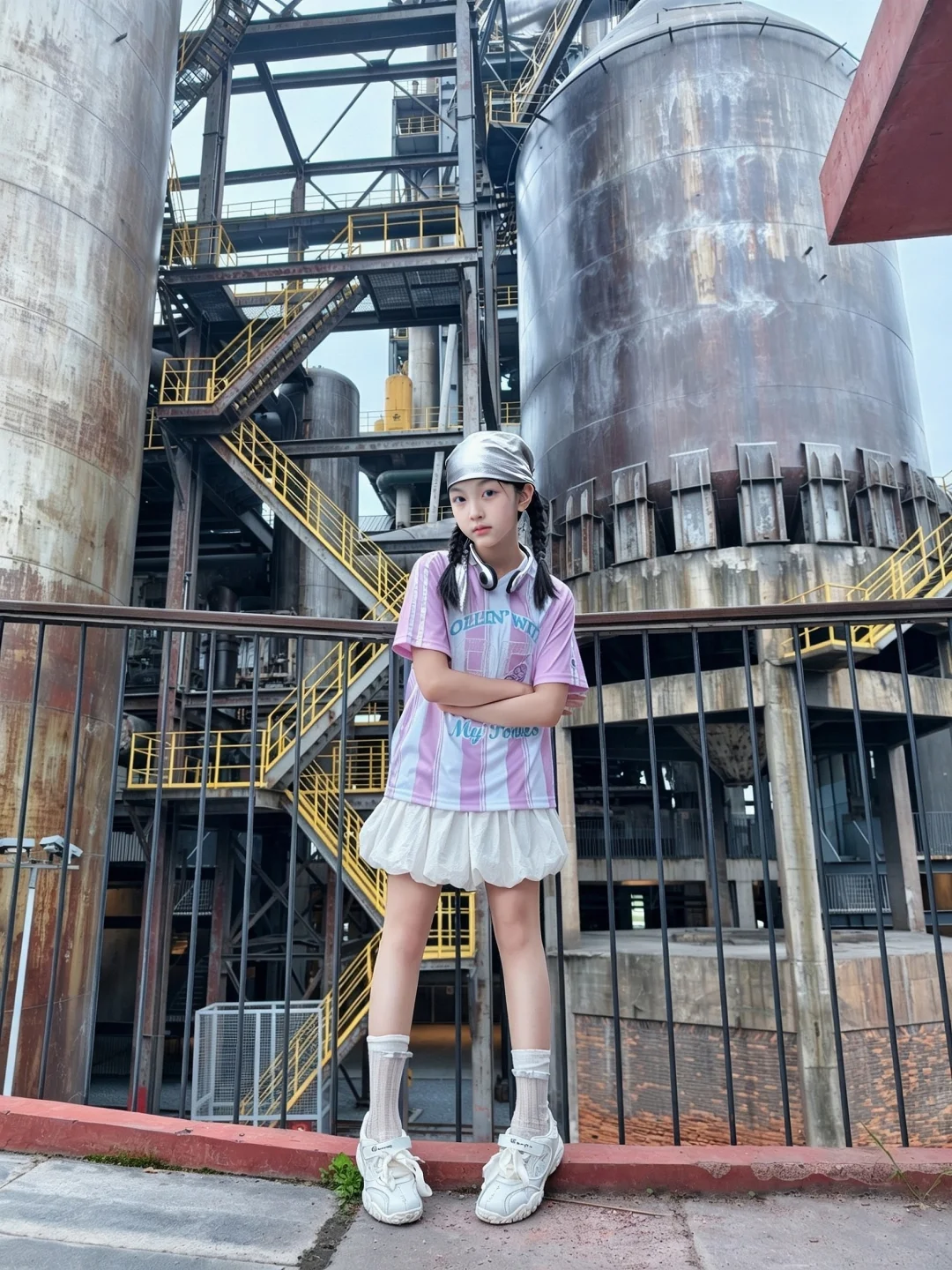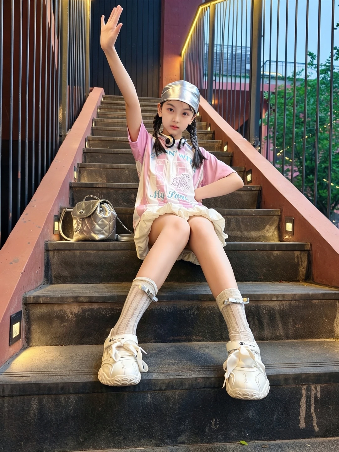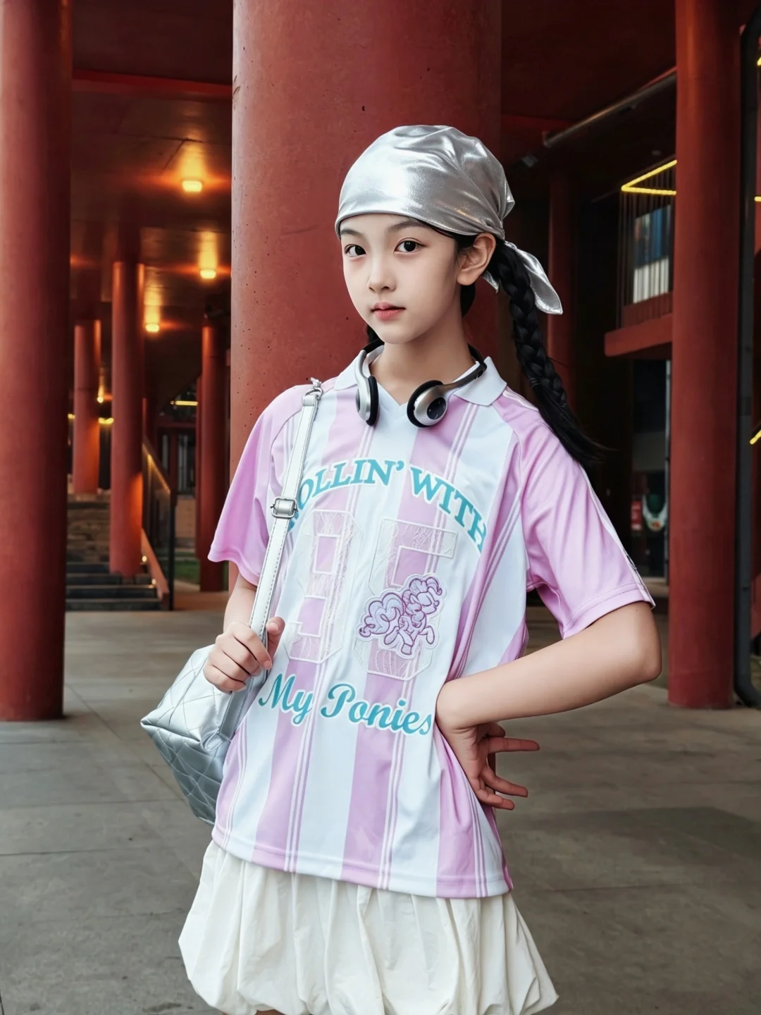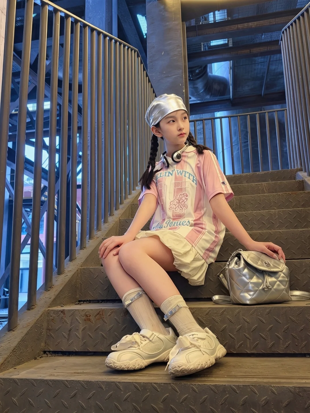 小孩姐自己还搭了个头巾,街头氛围感拉满