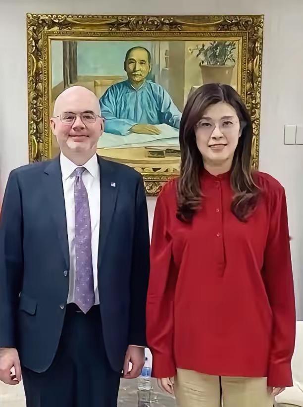 昨天,郑丽文去见了美国在台协会的谷立言。别人见老外,恨不得穿得跟洋人一样。她倒好,直接穿了一件大红衬衫,下面配个卡其色裤子。