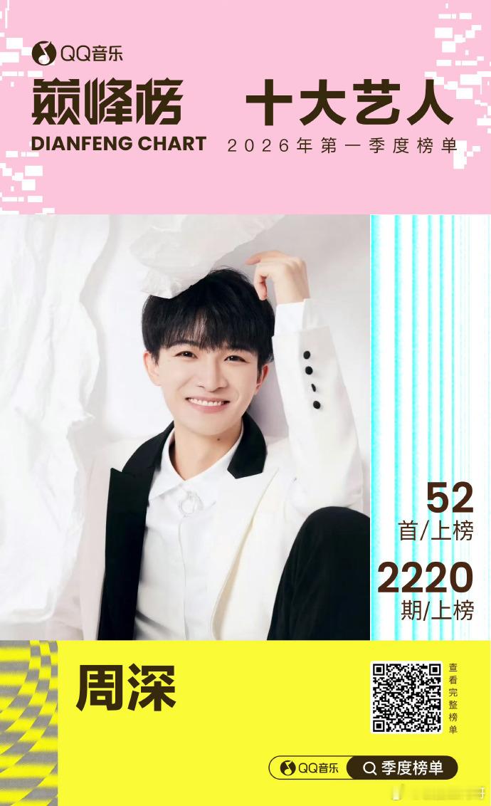 周深拿下QQ音乐巅峰榜十大艺人,歌曲《吉量》《占有(Live)》还分别斩获十大单