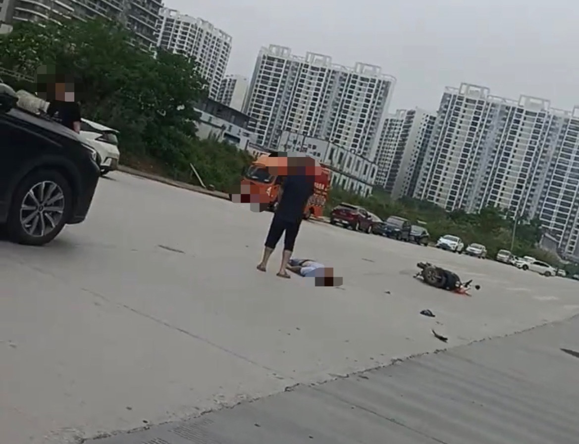 4月23日,玉林市玉东名某路一路口男子骑电动车被一辆新能源suv轿车撞飞多米远,导致男子睡着在地上。 玉林