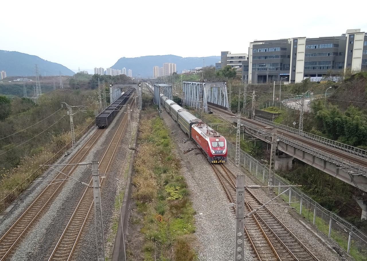 运行深圳与成都之间的列车经过唐家沱站,图1拍摄于2014年唐家沱站怀化端,图2拍摄于2025年唐家沱站重庆端,图1的时候是深圳西到成都K586次,当时这趟列车运行平南线、广深线、广茂线、河茂线、黎湛线、湘桂线、焦柳线、渝怀线、成遂渝线,最高时速120公里,运行时间比较长;图2的时候这趟列车已经升级为Z586次,深圳东到成都西,运行广深线、京广线、怀邵衡线’、渝怀线、成遂渝线,最高时速160公里,运行时间和路程大幅缩短。