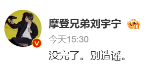 刘宇宁否认与宋祖儿恋情 刘宇宁表示:没完了。别造谣。 宋祖儿发文:“莓”好的一天