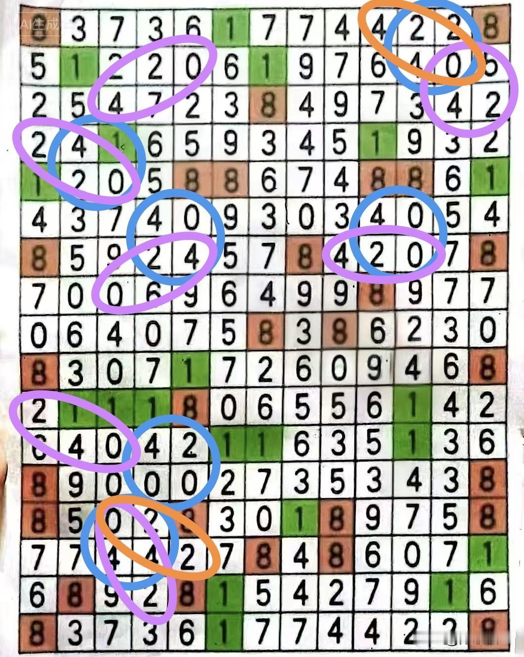 数组“420”又是一堆共20个位置区域,与“584”的粘连位置不下17个(懒得细数了)。今日少选一点,508、607,809、568、759、678、869。