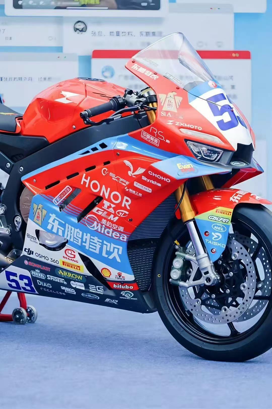 张雪机车的涂装满满当当 太燃了!张雪机车身披满涂国货战袍,大疆航拍镜头紧跟赛道,
