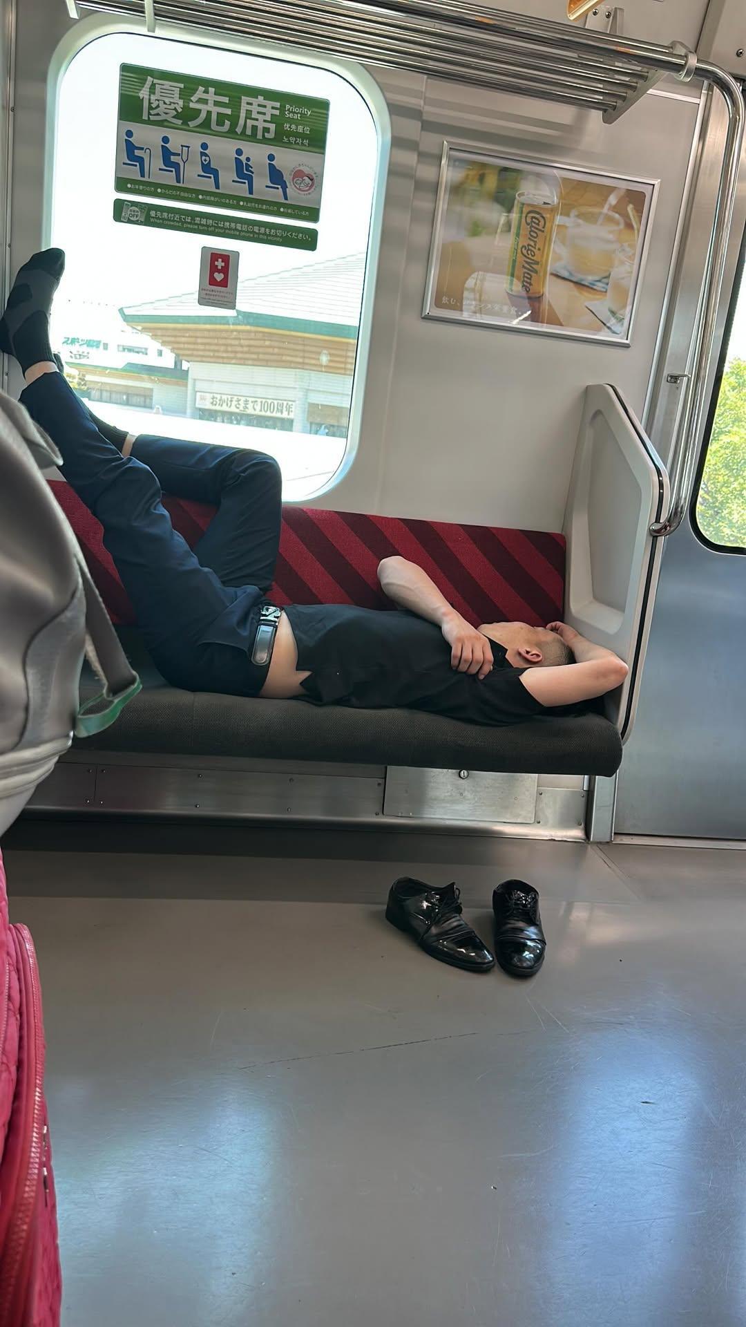 在脆上被点赞32万的帖子:一个香港女生在日本看到了有人躺在地铁椅子上,于是她把对方的鞋子踢出了车厢