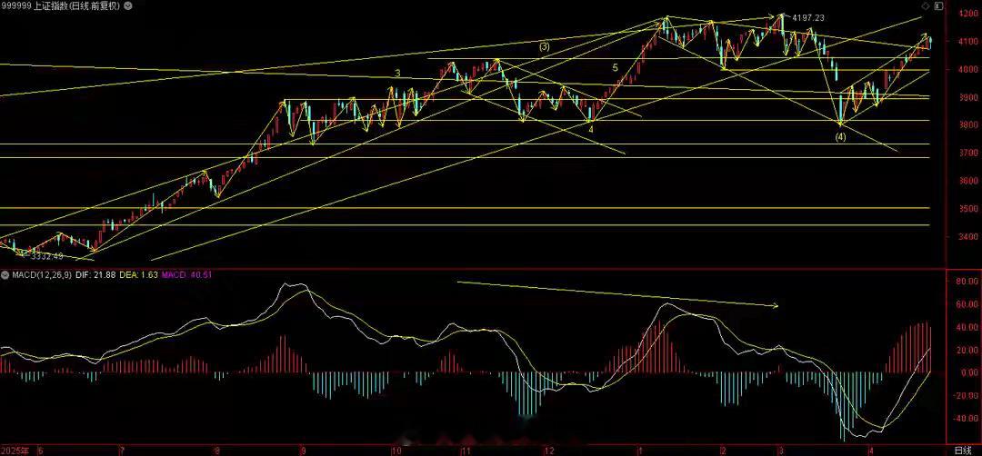 放量阴线巨震,判断性质是洗盘!日内,3大指数高开低走,盘中一度跌幅较大,临近收盘明显收窄,但仍然分别下跌0.32%,0.88%和0.87%。成交量,两市合计28045亿,相比昨天放大2447亿。板块方面,仅油气开采,煤炭开采,油服工程,电力等少量板块逆势上涨,其它大部分板块下跌,其中金属,通信设备,元器件,半导体,消费电子,军工,等跌幅居前。今天,指数短暂创了4114新高后快速跳水,判断主力资金意图:1,回踩喇叭型上轨线,之前突破后没有阴线回踩,2,回踩一下60日线,以确认突破的有效性,日内最低4070,离60日线4054,差16点。明天仍有可能回踩60日线,往下空间极其有限,一旦回踩完成,将会加速上涨。前途是光明的,过程稍有颠簸,保持定力!上证指数30分钟走势来看,macd死叉向下,调整走势继续保持。但由于没有破零轴,保持强势震荡。大盘综合评分:5.75分(满分为10分,5.5分及格),短线操作难度评分: -15分(满分为100分,60分及格),市场情绪:差(主观感受,主要分为好,差,中性),市场状态:中期处于强市中,短期看震荡。两市涨跌比927:3840,涨跌停比50:16,下跌家数极多,跌停家数大幅增加,操作策略:中期进攻,短期进攻。附图是上证指数30分钟和日线图