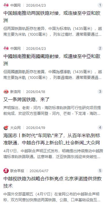 其实不光是蒙古和朝鲜,整个亚洲国家都在主动向中国抛合作橄榄枝。2026年4月刚出炉的中越联合声明明确划了三条铁路线:老街—河内—海防、同登—河内和芒街—下龙湾—海防,全部要求采用标准轨距设计。去年年底,老街到河内到海防的标准轨铁路一期已经破土动工,全长390.9公里,总投资超过83.7亿美元,计划2030年完工。用学者的话说,越南眼看着老挝通过中老铁路享受了实打实的红利——老挝到泰国的运输时效从20天以上压缩到3天以内,跨境货运突破1500万吨,辐射近20个国家和地区——心里能不急吗?
