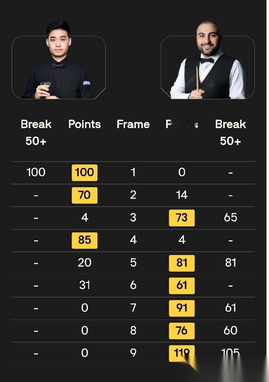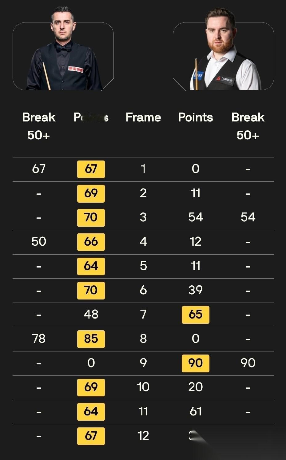 再看另外两场。塞尔比和奥沙利文这两个老球王,那是真不给新人留脸面,上来就是一顿拿捏。