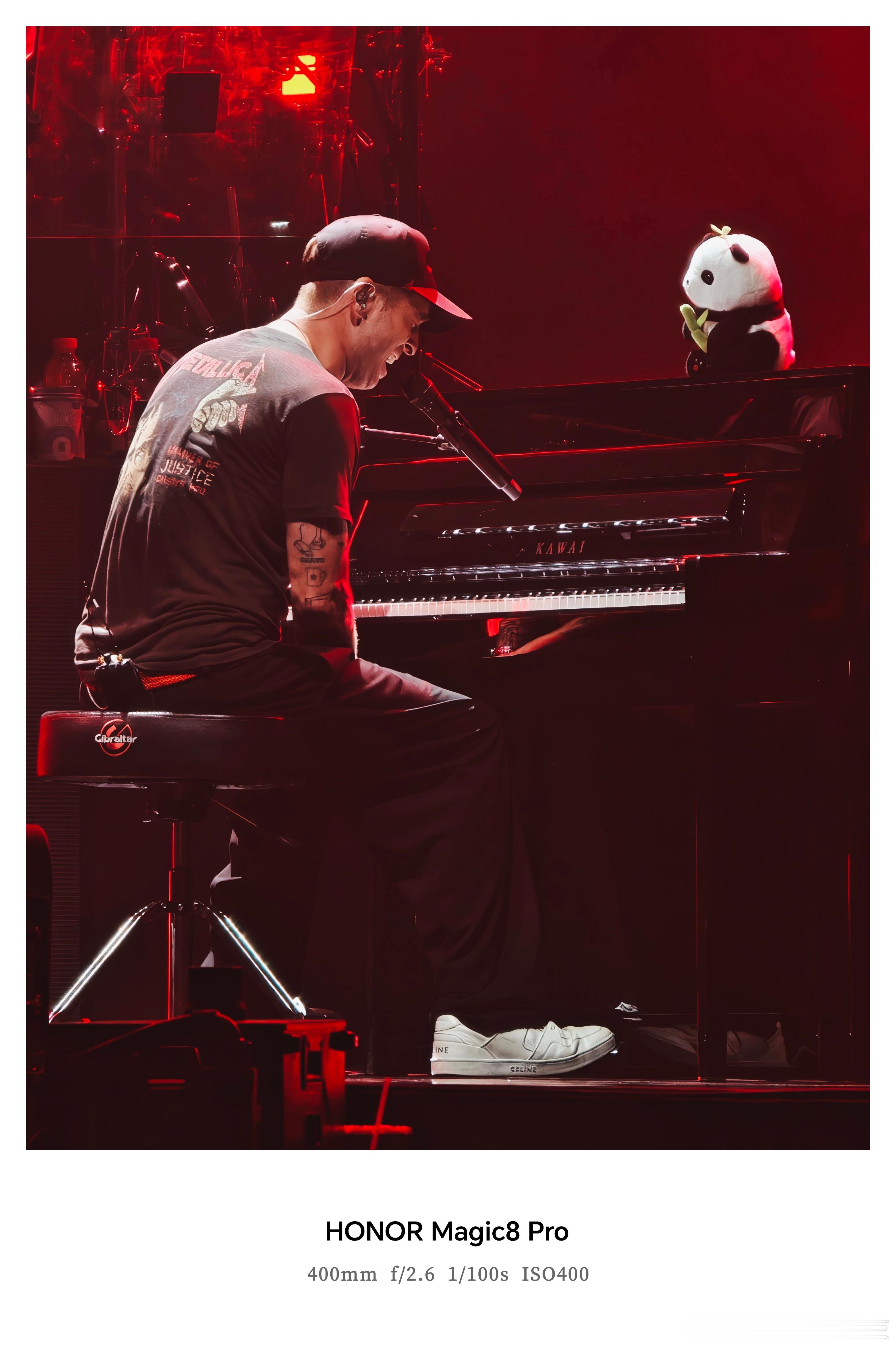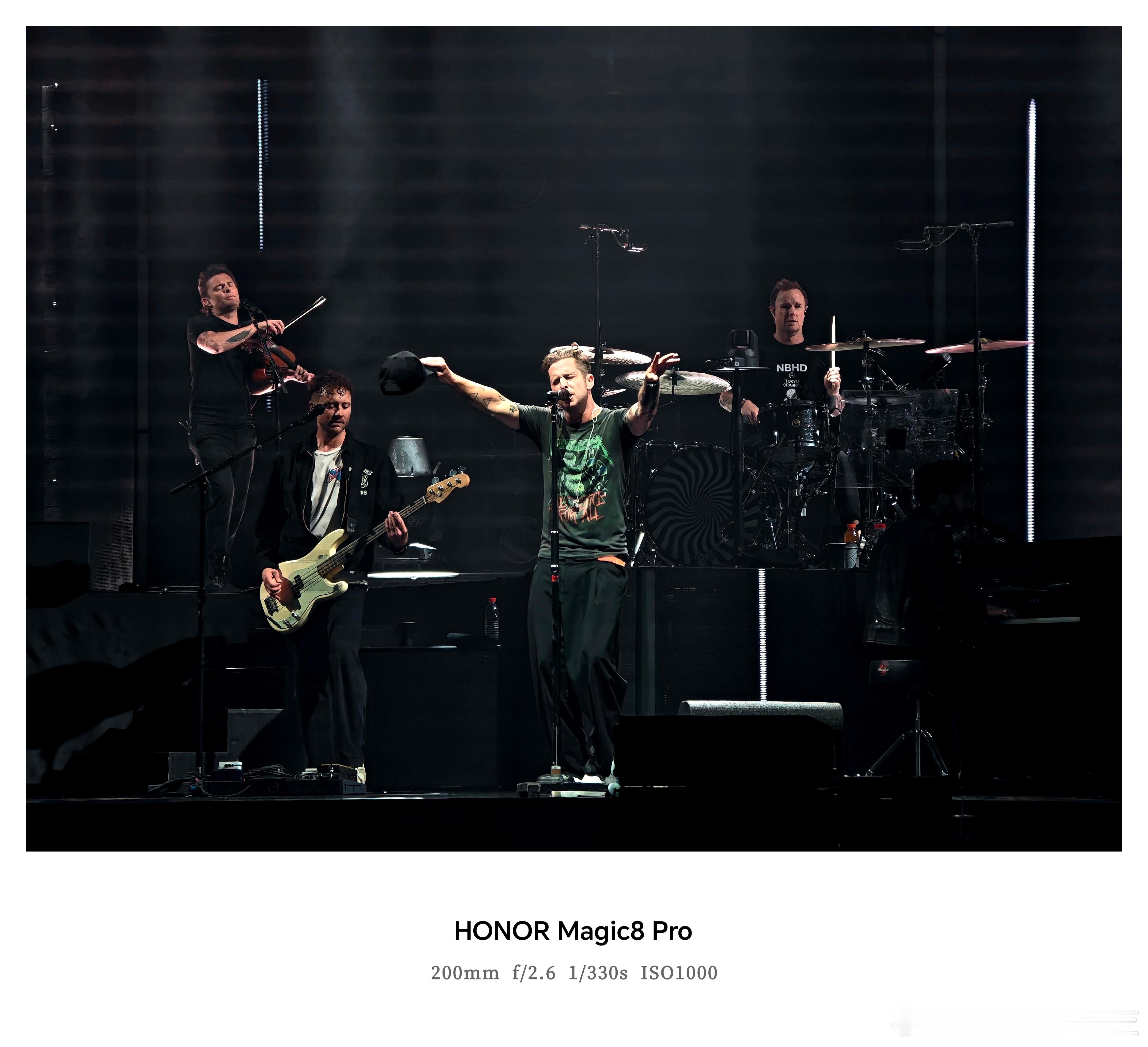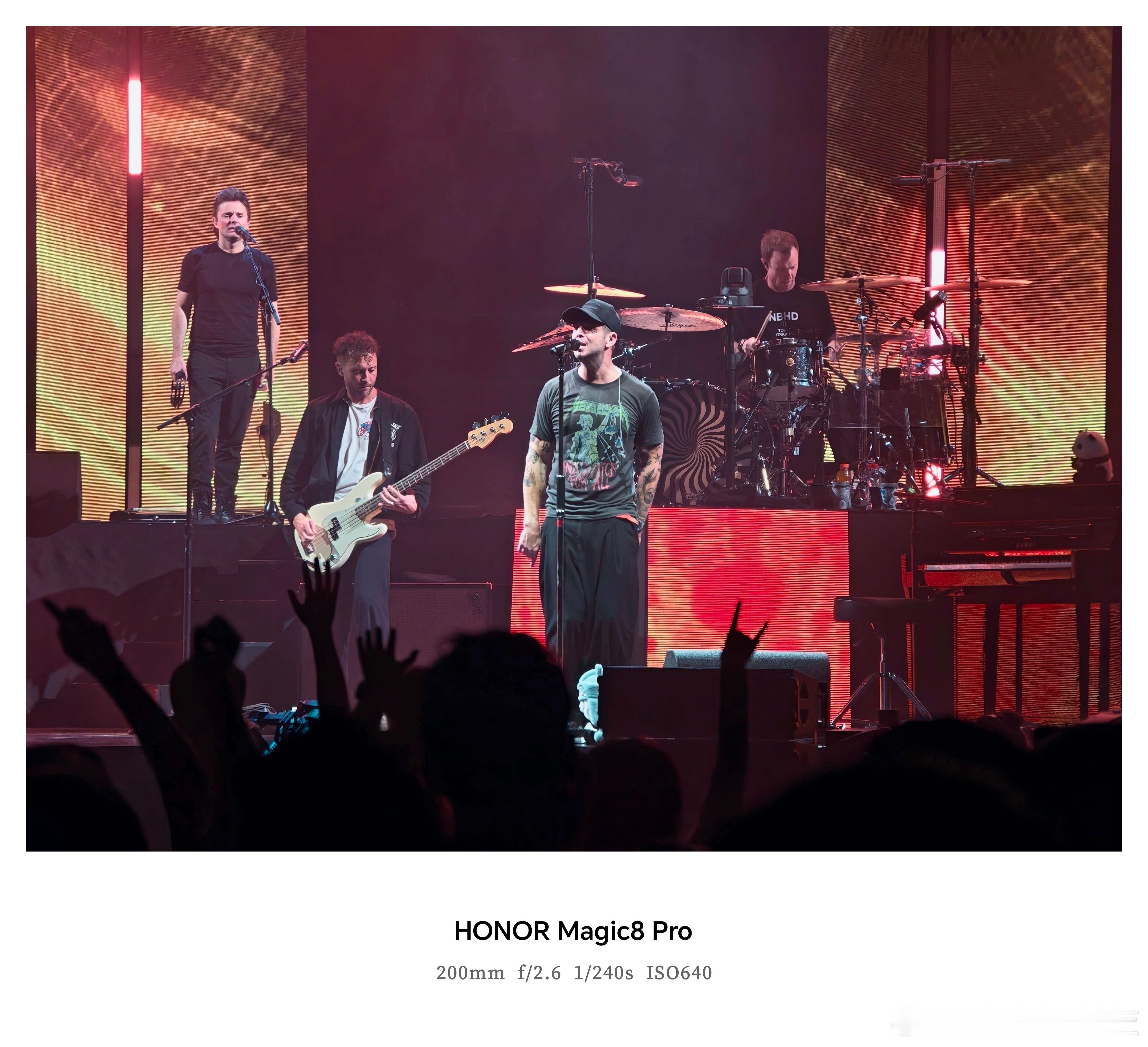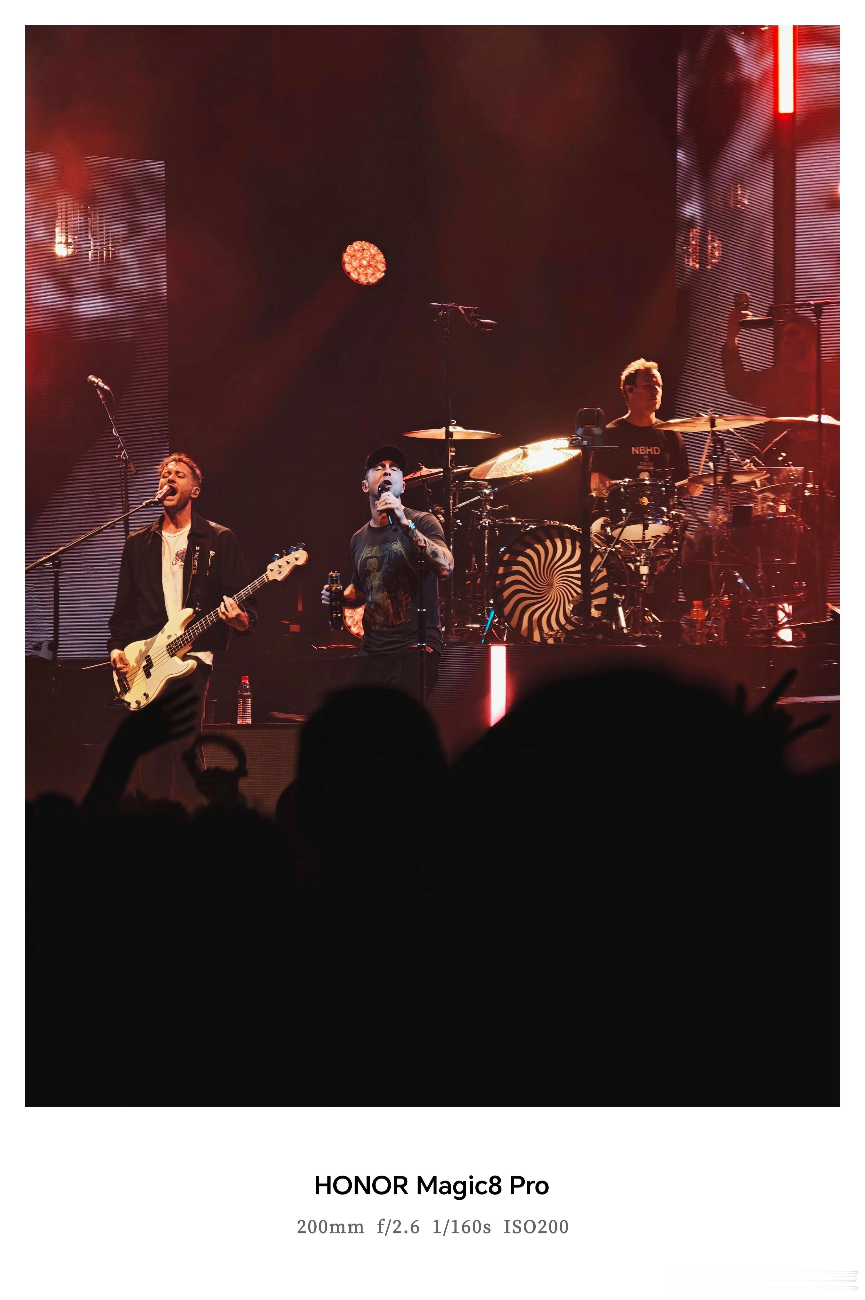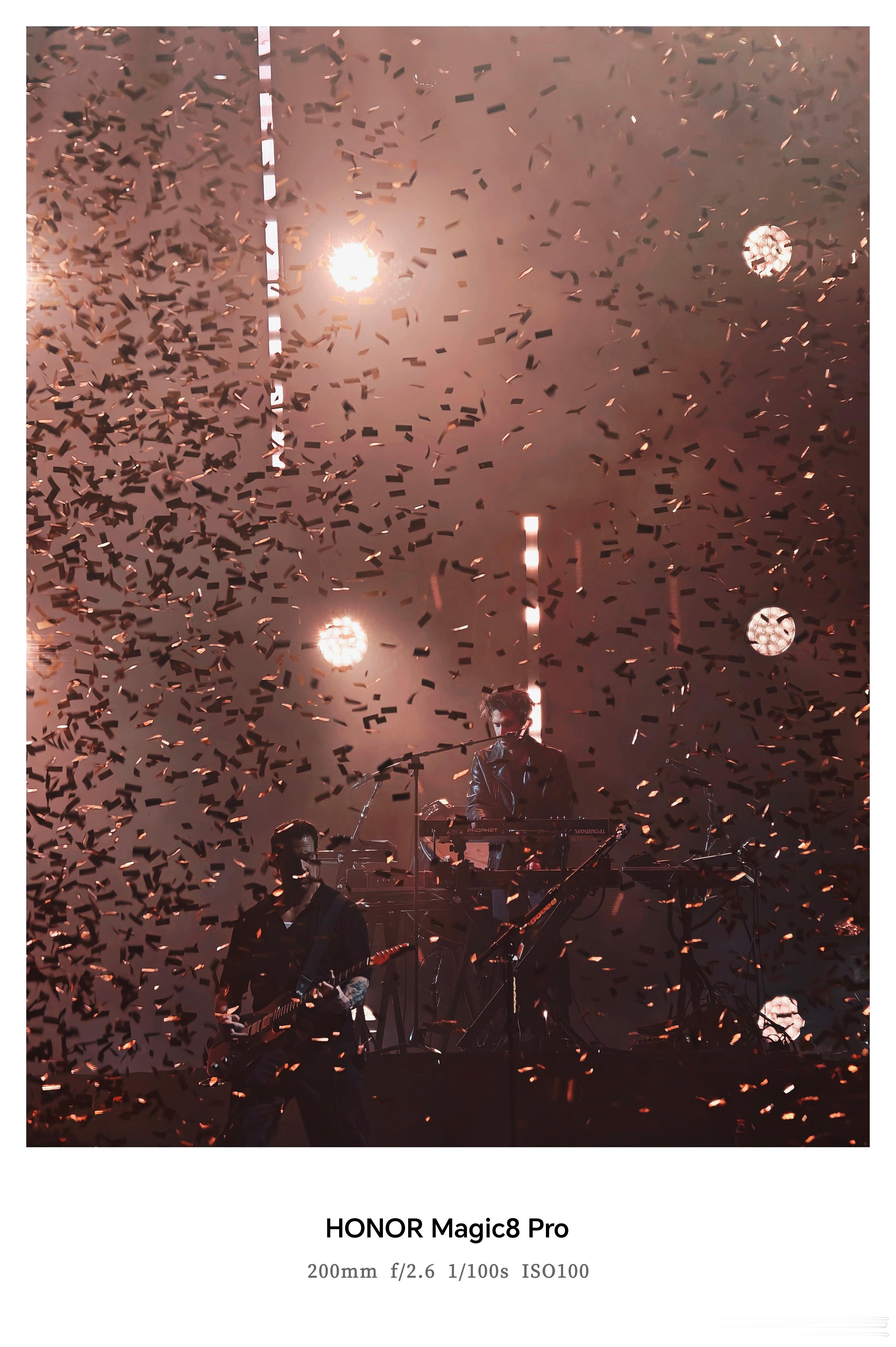 用荣耀Magic8 Pro和增距镜记录下激情的演唱会。荣耀Magic8追星神器荣耀手机影像计划