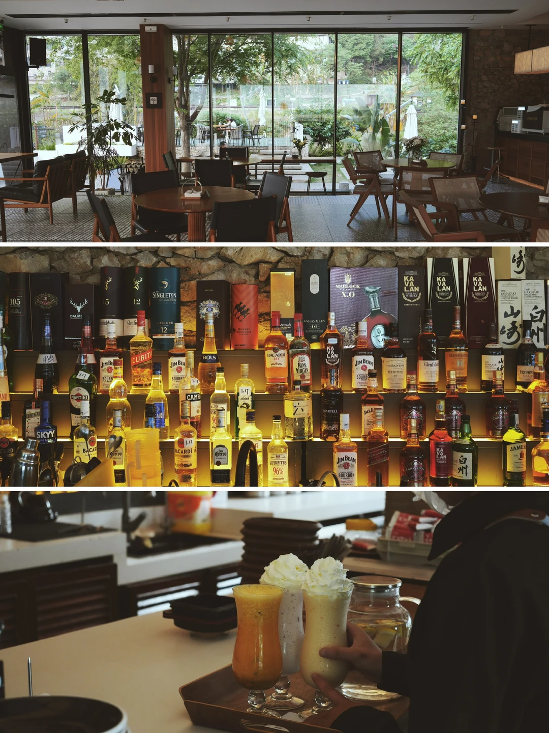 一楼是咖啡前台+莫奈花园,喜欢花花草草的,充满度假感,随手一拍都是大片
