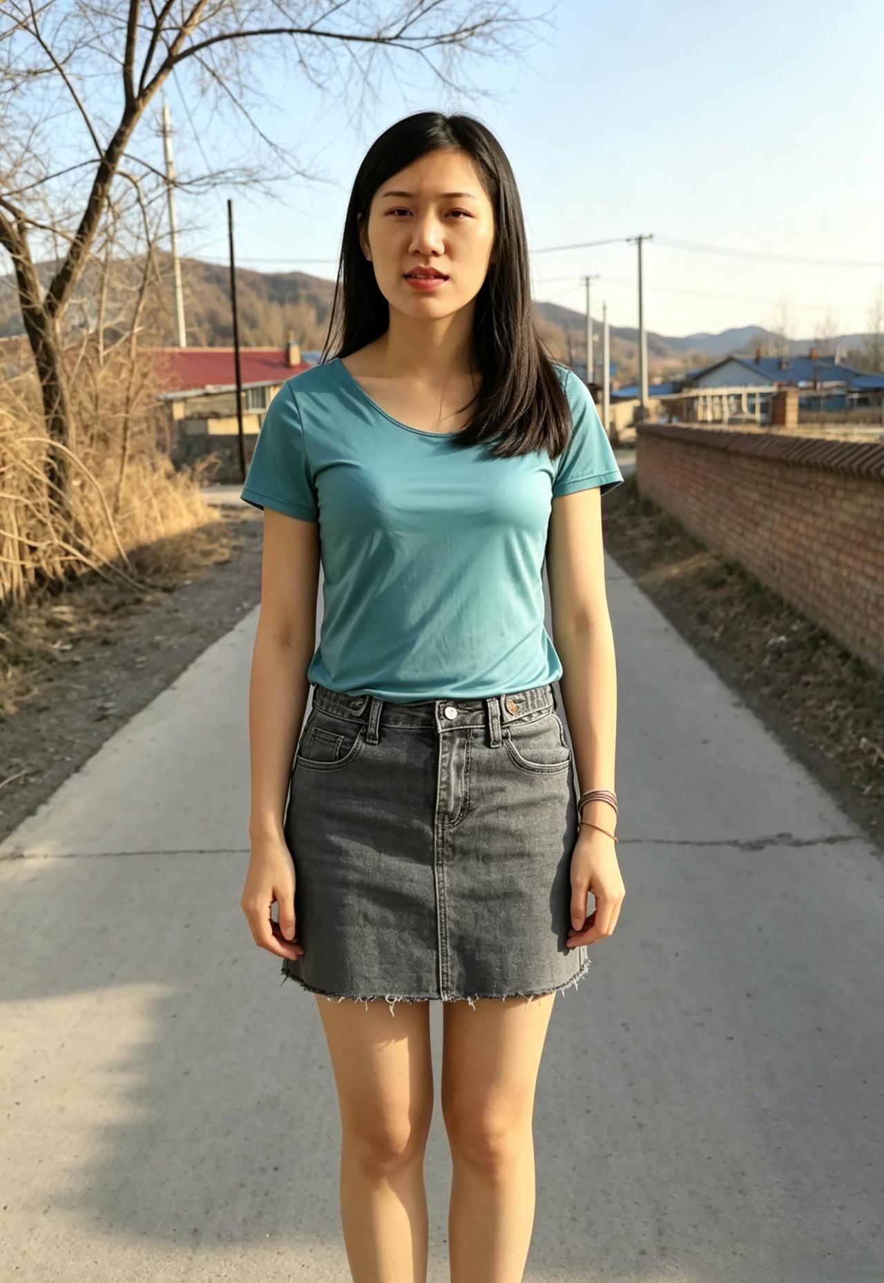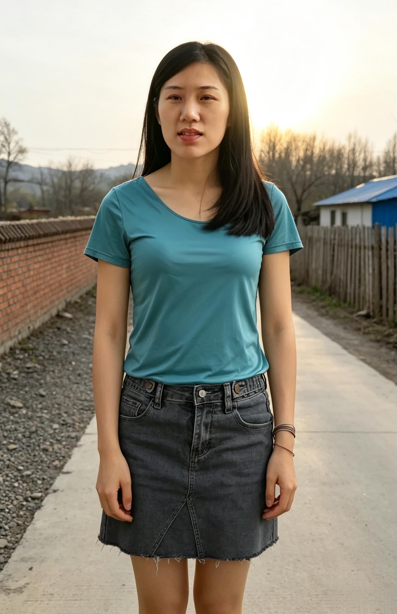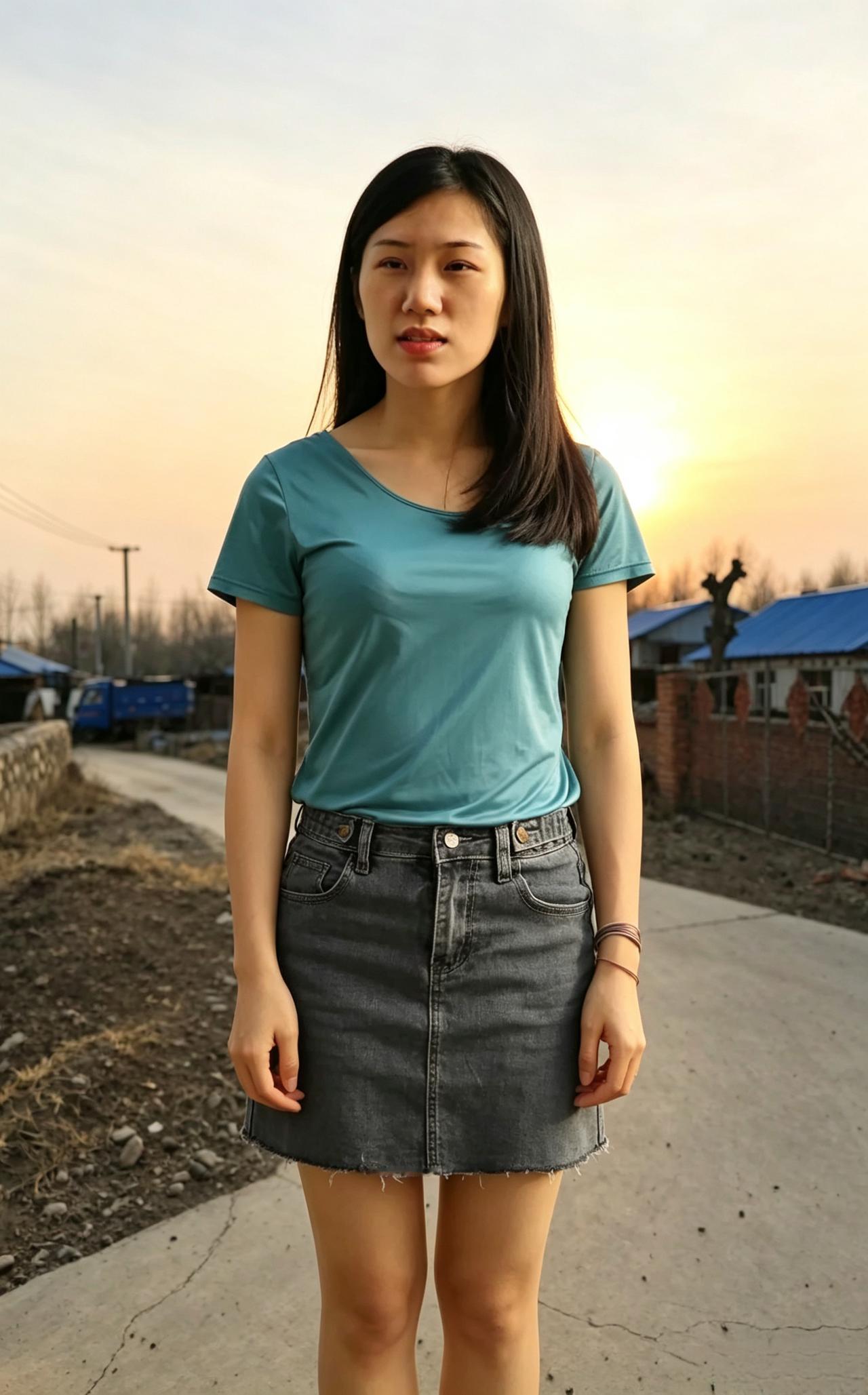 日暮郊原风渐柔,青衫浅立自清幽。 乡间暮色添灵韵,一笑嫣然醉春秋。