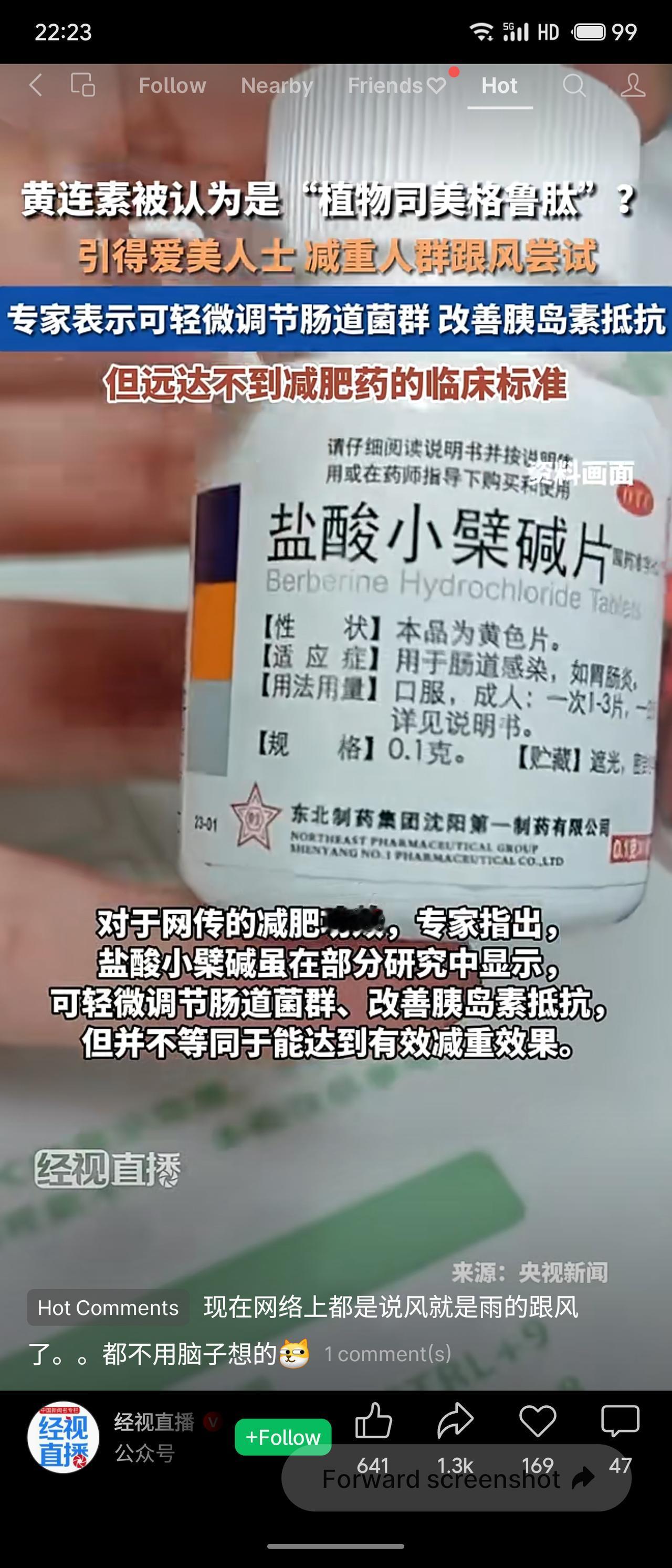 网传黄连素是“植物司美格鲁肽”,引发跟风减肥。专家澄清:盐酸小檗碱可轻微调节肠道