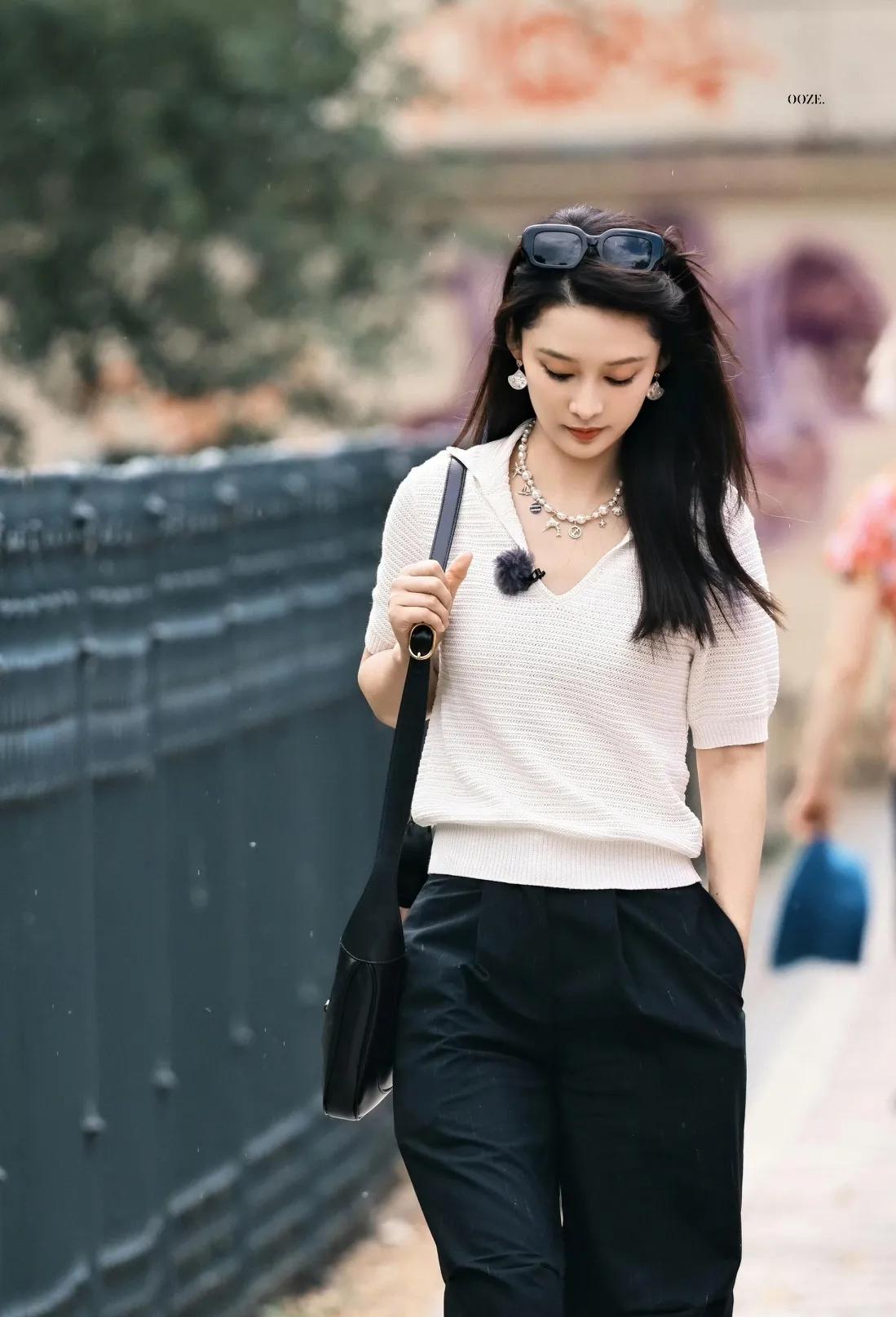 被李沁这套私服狠狠种草! 米白Polo衫+黑色阔腿裤,不挑身材的万能搭配公式,温