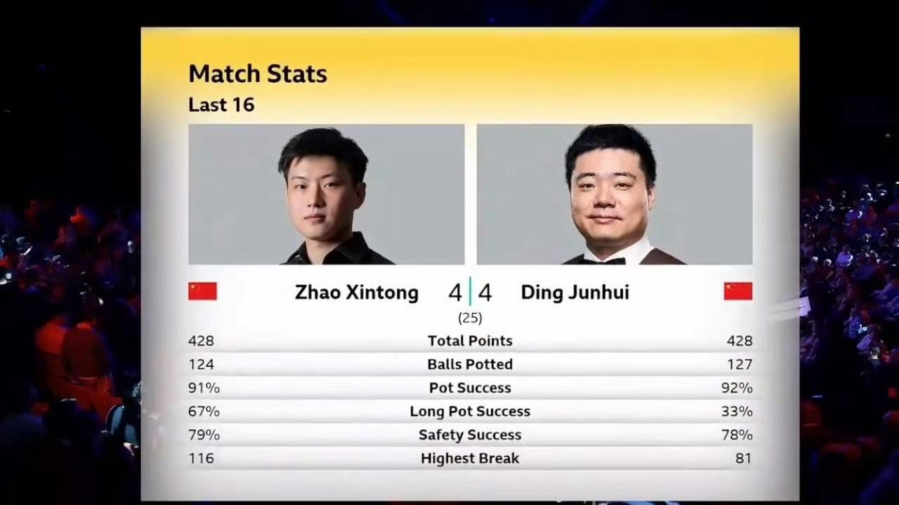 丁赵会登上热搜第二位!两人果然不负众望,首阶段结束4-4战平。更加奇怪的是两人总得分一样,都是428分。