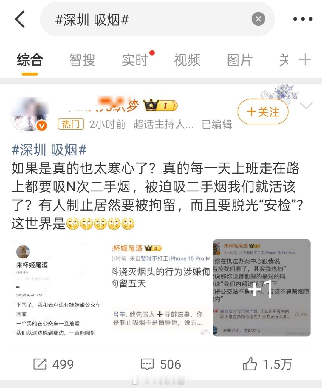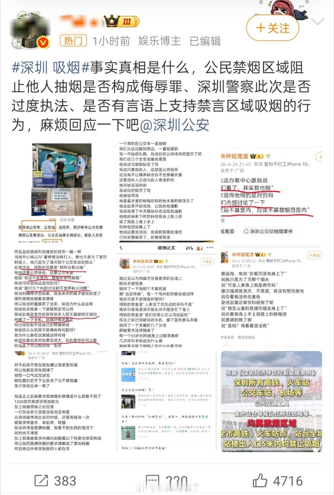 基本上矛头全往深圳警方,深圳zf上指,我记得之前好多关于吸烟的事情,最后都成了互联网搞对立,搞流量的狂欢热点观点