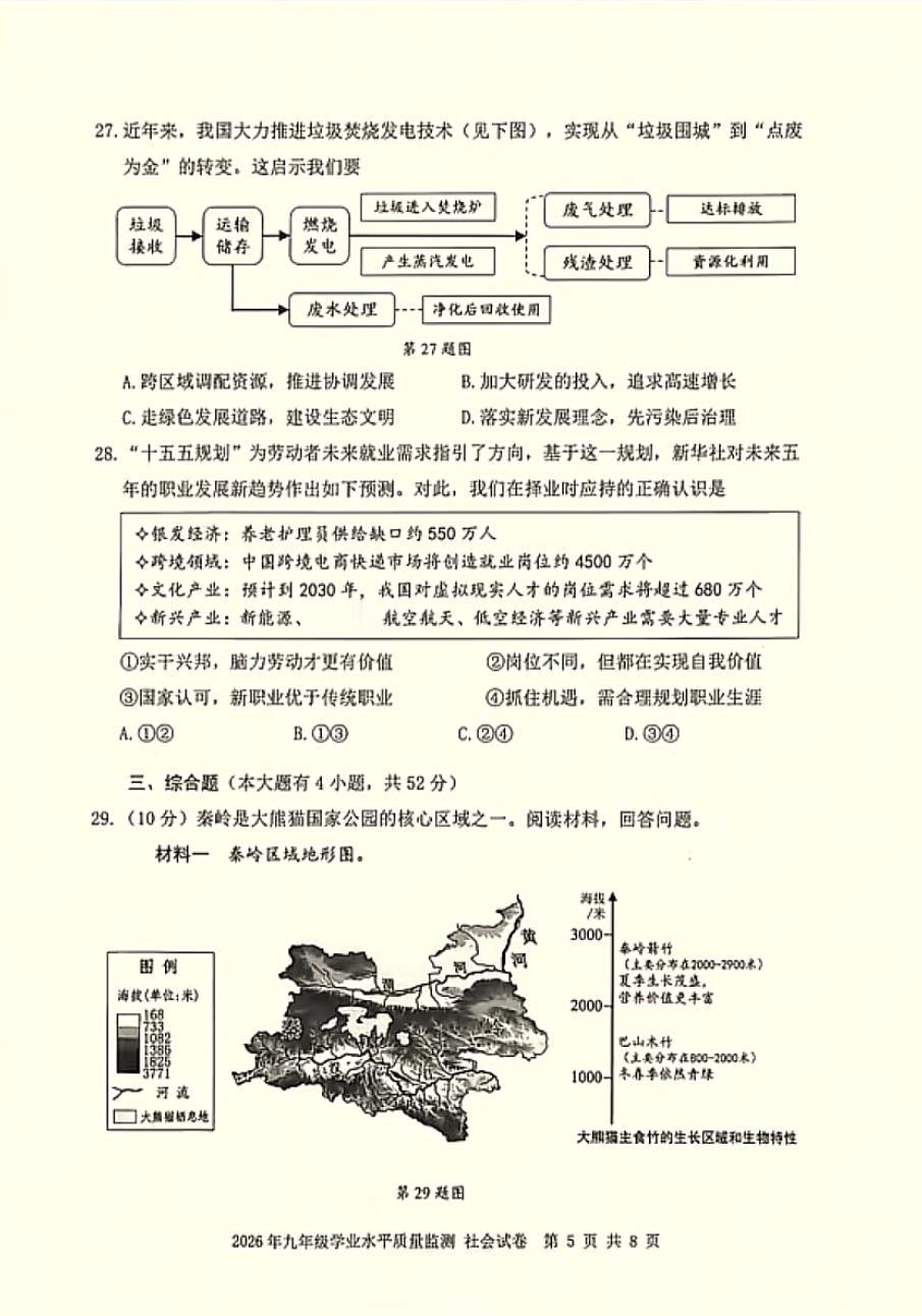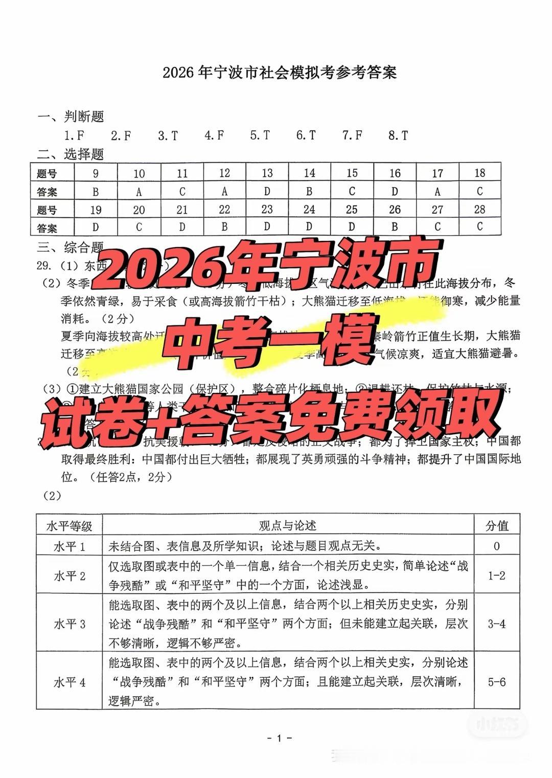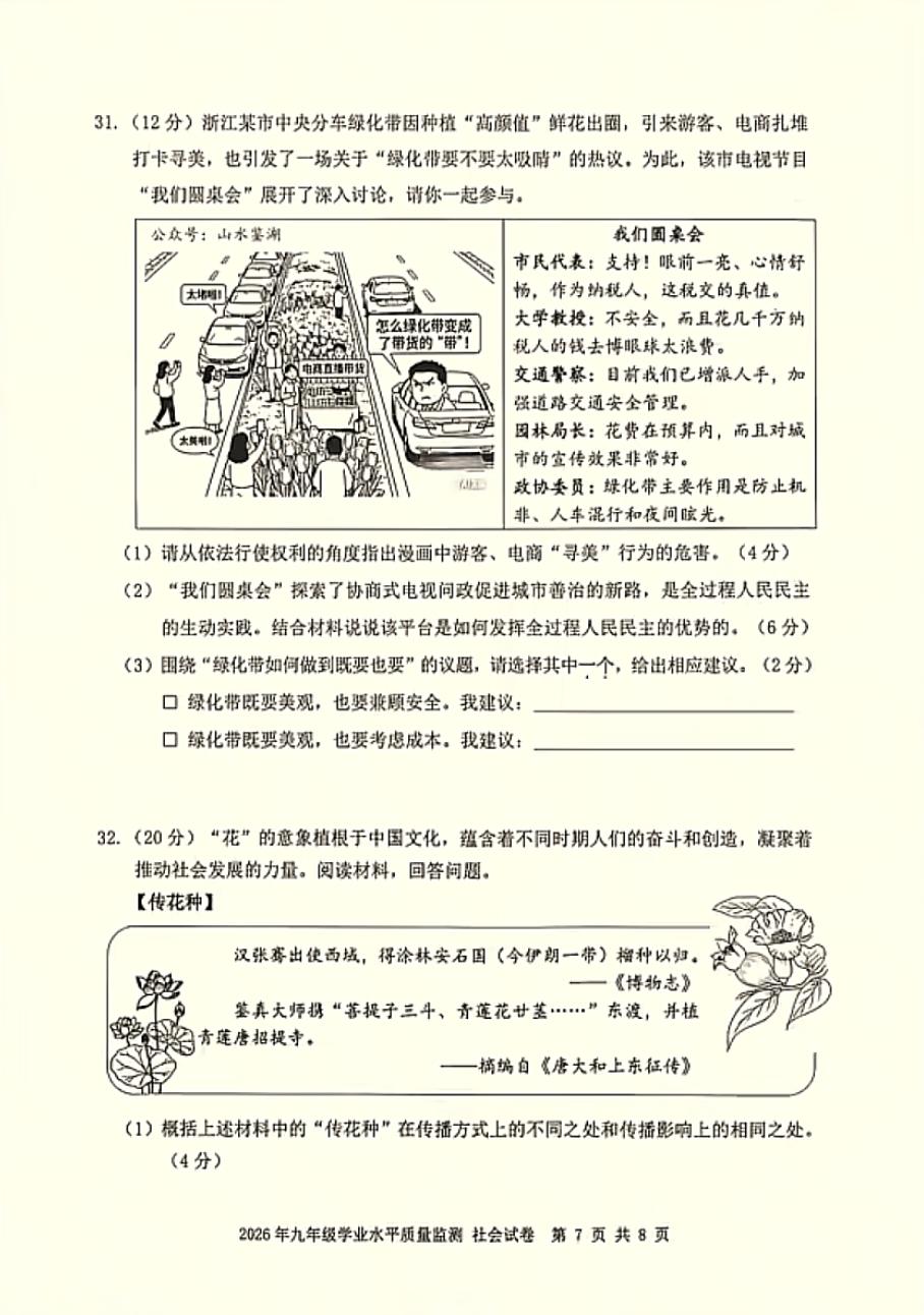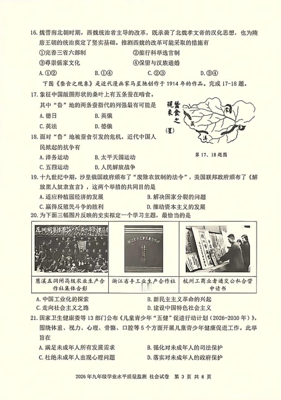 这个社会卷子咋样?一言难尽啊宁波一模 社会试卷及参考答案 浙江中考 一模