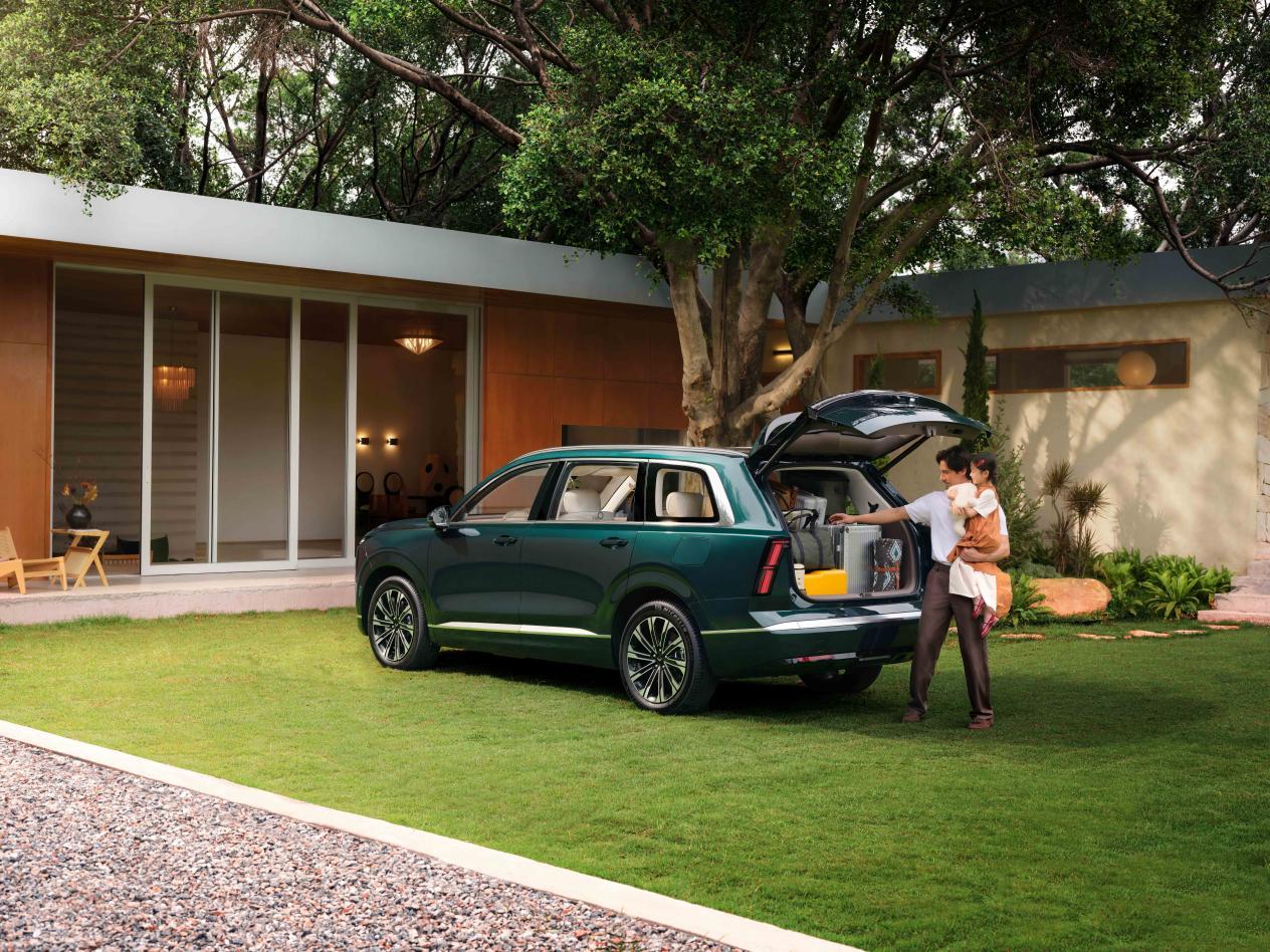 空间方面,2950mm越级轴距,90%得房率搭配超大天幕,座舱通透。同级最大门洞+190mm纯平过道,老人小孩上下车、二三排进出都方便,40处储物空间+灵活后备箱,露营装备、婴儿车轻松装下。