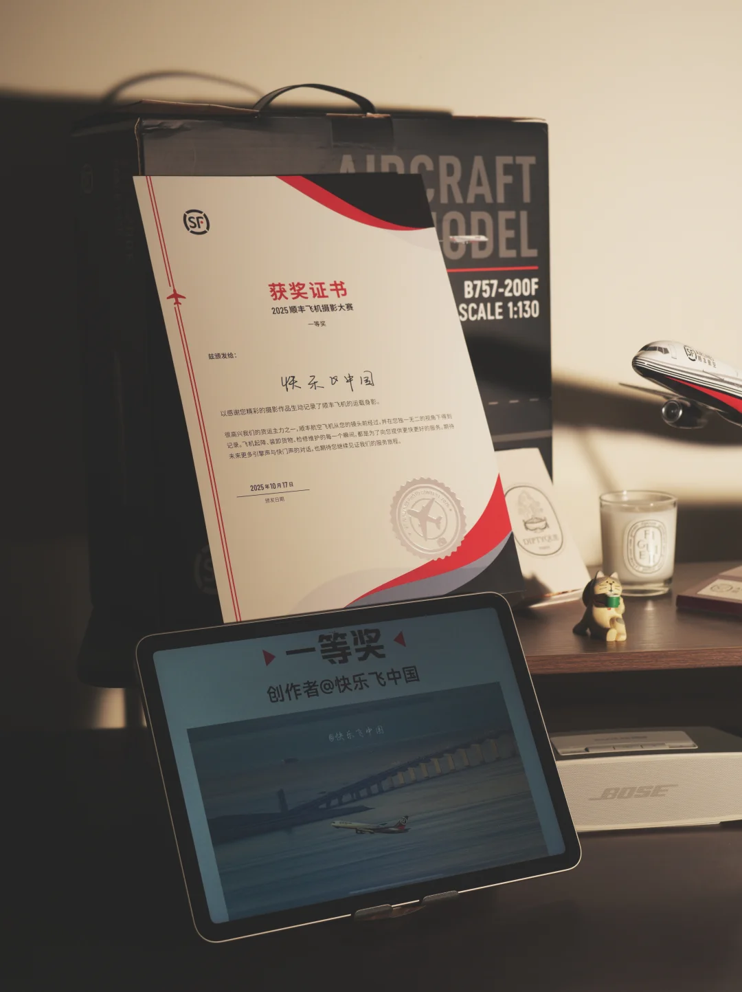 说起顺丰航空757-200,飞哥参加的顺丰摄影比赛,得了个一等奖,奖品就是757的机模,