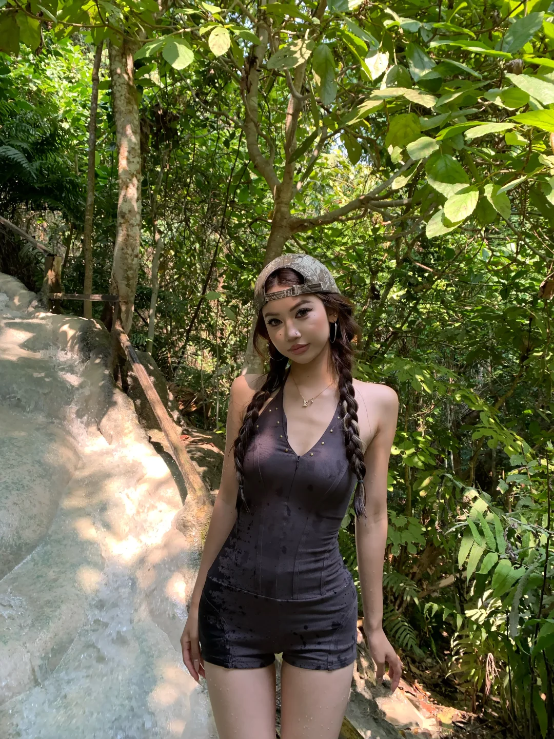 清迈旅行 拍照姿势 泰国 沾沾瀑布 穿搭bot 美式复古 亚裔风 挑染 超会穿企划RED新生代创作大赛