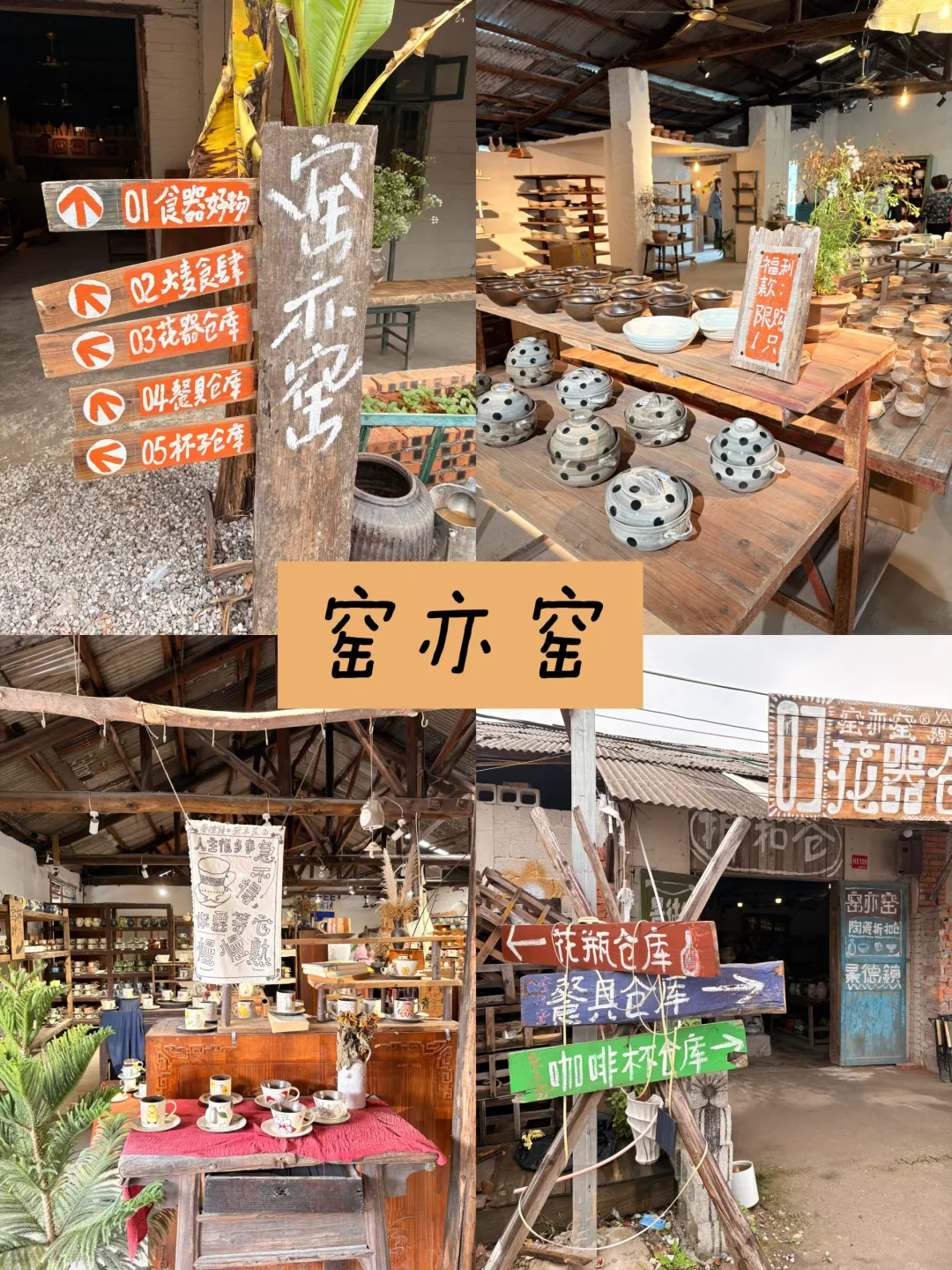 ✨特点:老红砖厂房改造,工业风出片。一半平价小物、一半原创工作室,传统雕塑瓷+现代手作都有,性价比最高。