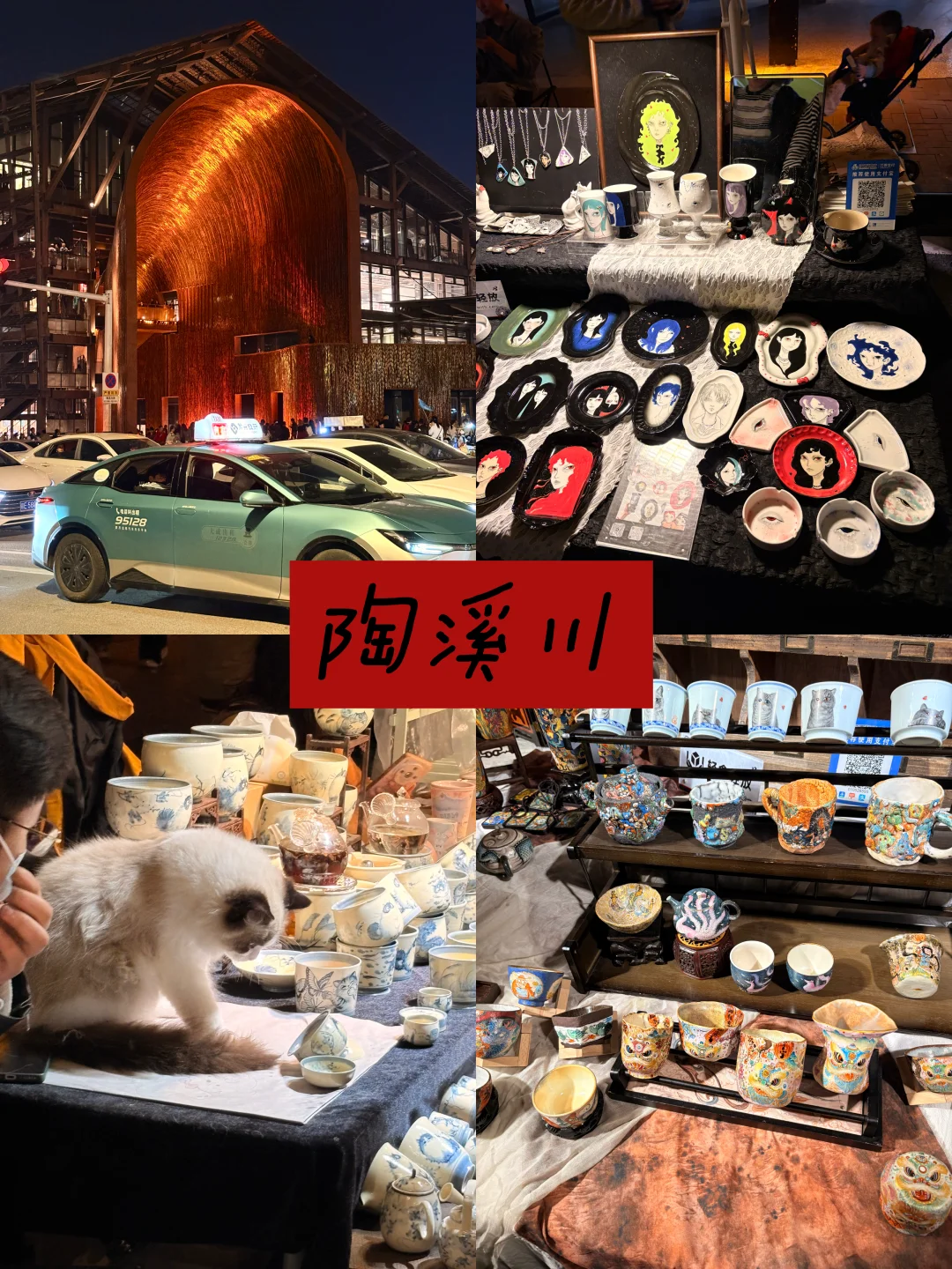 ✨特点:旧瓷厂改造的文艺街区,夜景绝美。摊位分创意区、传统区、设计师区,原创设计感最强,偏年轻化。