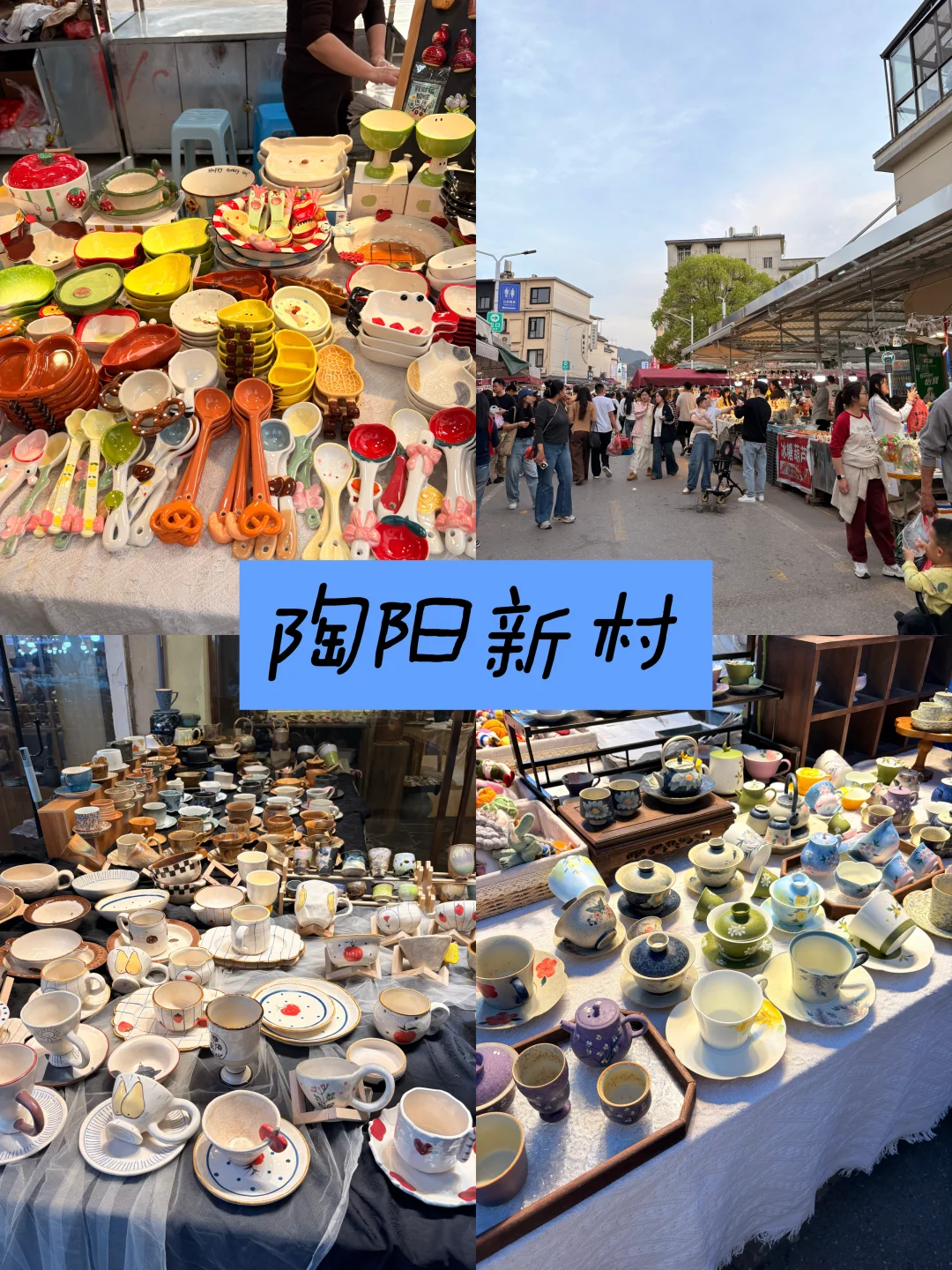 ✨特点:本地人私藏夜市,烟火气浓。全是日用瓷、小摆件、茶具,10-50元均价,工厂货多、同质化高。