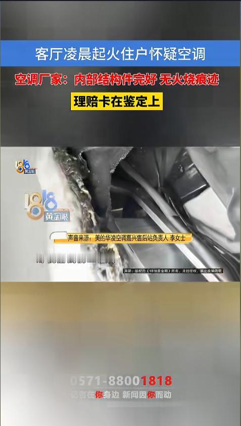 信息来源:《客厅凌晨起火住户怀疑空调,空调厂家:内部结构件完好 无火烧痕迹,理赔卡在鉴定上》1818黄金眼