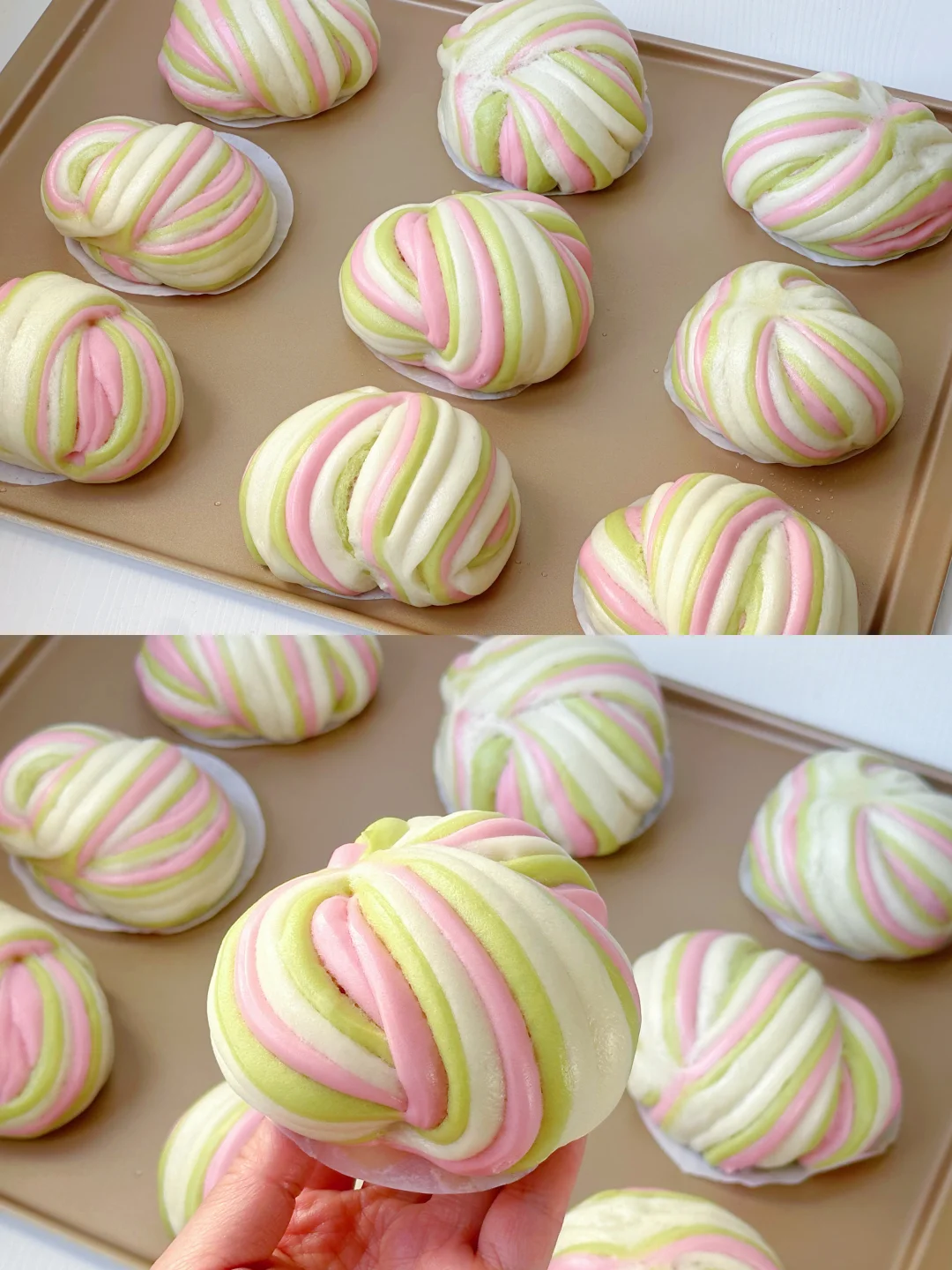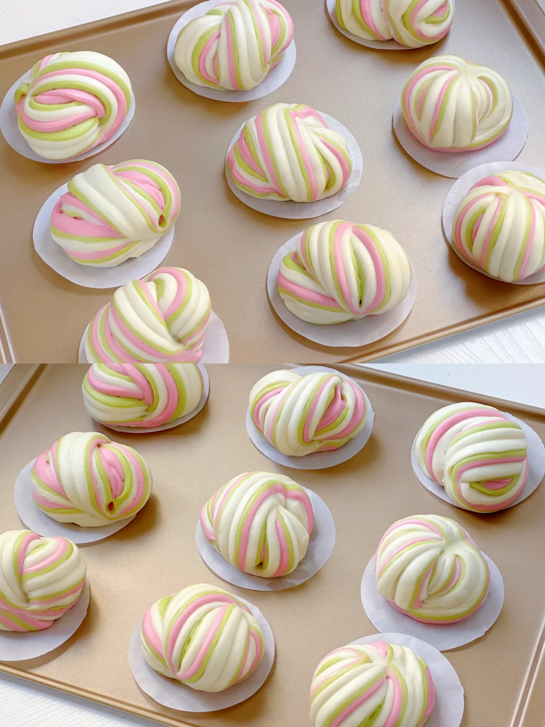 4️⃣做好后发酵至1.5倍大(按压花卷表面,能慢慢回弹即可),水开上锅蒸12分钟左右,关火焖2分钟即可出锅啦!