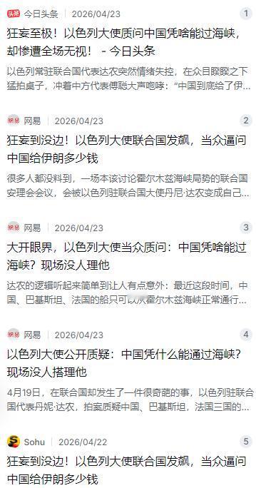 4月20日,联合国安理会一场会议上演了令人瞠目结舌的一幕。本该聚焦中东局势的讨论,突然被一场毫不相干的质问打断。以色列常驻联合国代表达农毫无征兆地调转矛头,直指中国常驻联合国代表傅聪大使,抛出一连串咄咄逼人的质问:你们到底跟伊朗签了什么秘密协议?给了德黑兰多少钱才有资格让中国船只通过霍尔木兹海峡?把协议拿出来给全世界看看。