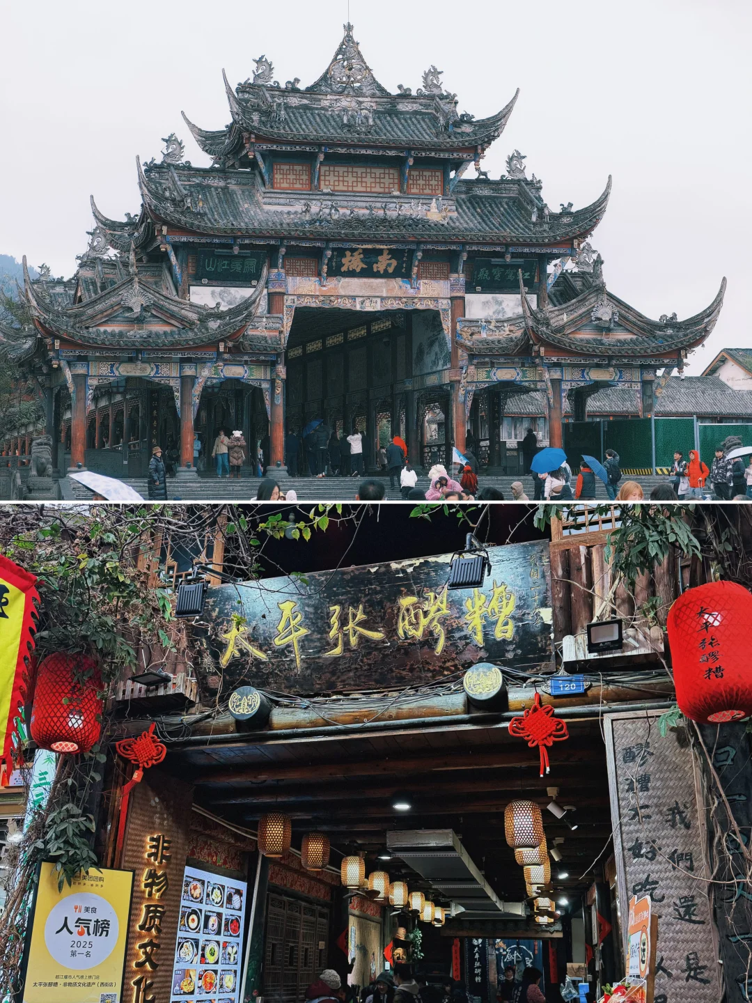 1号门出来,穿过左手边的南桥,就是灌县古城啦,里面有百年老店、特色餐馆,可以在这里搞定午餐~