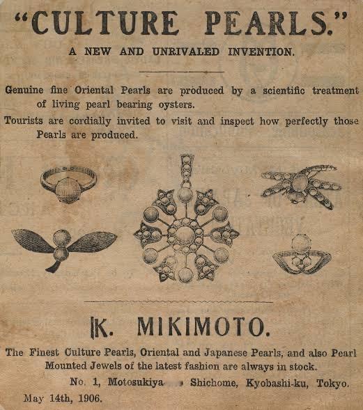 【来自投稿】上世纪日本珍珠品牌Mikimoto(御木本)的广告,御木本的创始人御木本幸吉也是现代人工养殖珍珠技术的发明者。