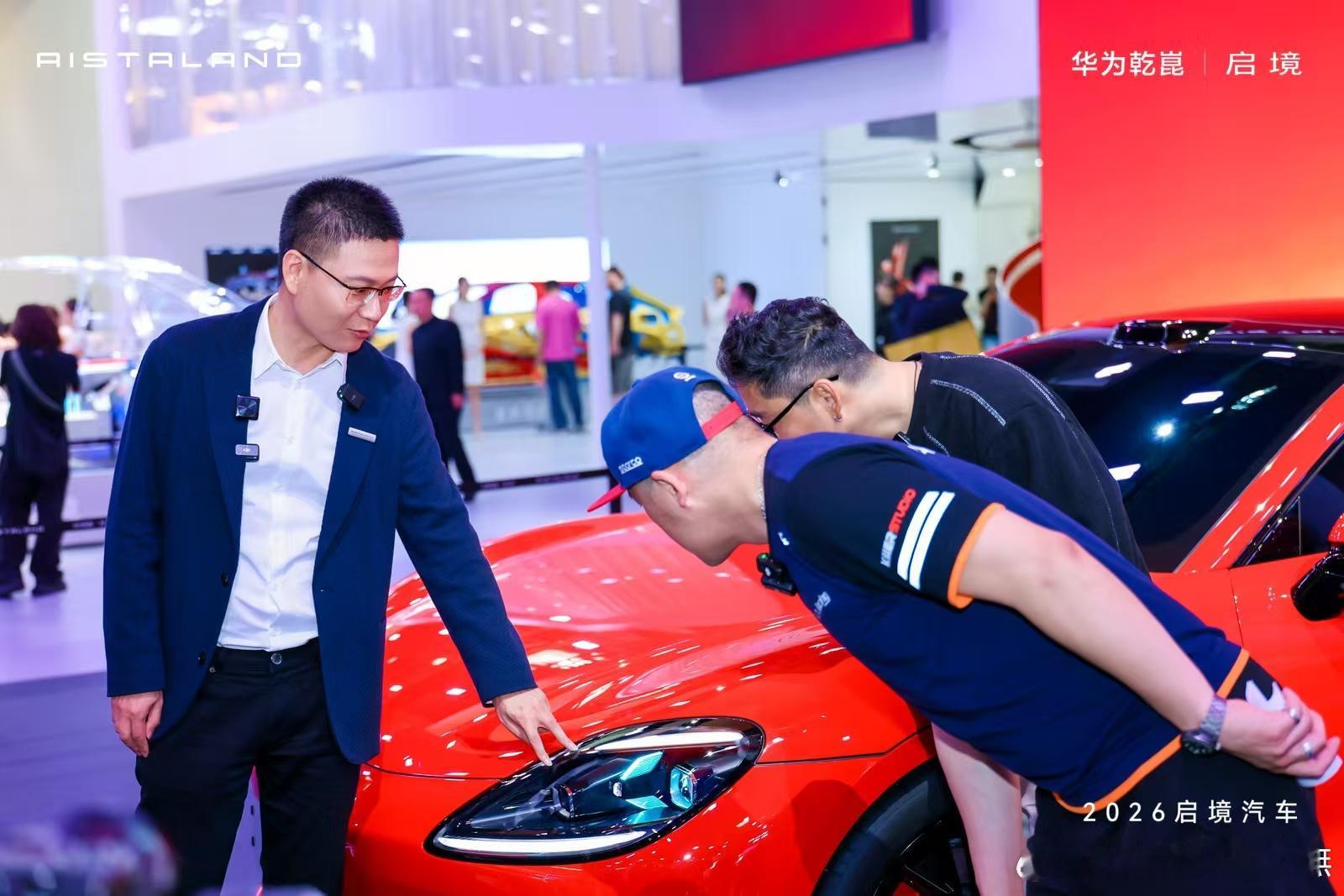 2026北京车展正式启幕,各界大咖齐聚现场,启境汽车展台人气持续走高。被网友称作“魔童爸爸”的哪吒核心设计师申威现身启境展台,瞬间引爆现场人气,车展秒变打卡围观现场。现场他与启境GT7产品总经理轩伟深度对谈,近距离品鉴启境GT7猎装轿跑身姿,搭配HUAWEI XPIXEL双百万像素灵眸大灯,锋芒质感拉满。沉浸式领略新车设计后,申威心生灵感,主动提出为启境创作专属IP形象,现场为启境汽车即兴创作漫画,展台现场瞬间引爆众人围观。大佬不语只是一味炫技